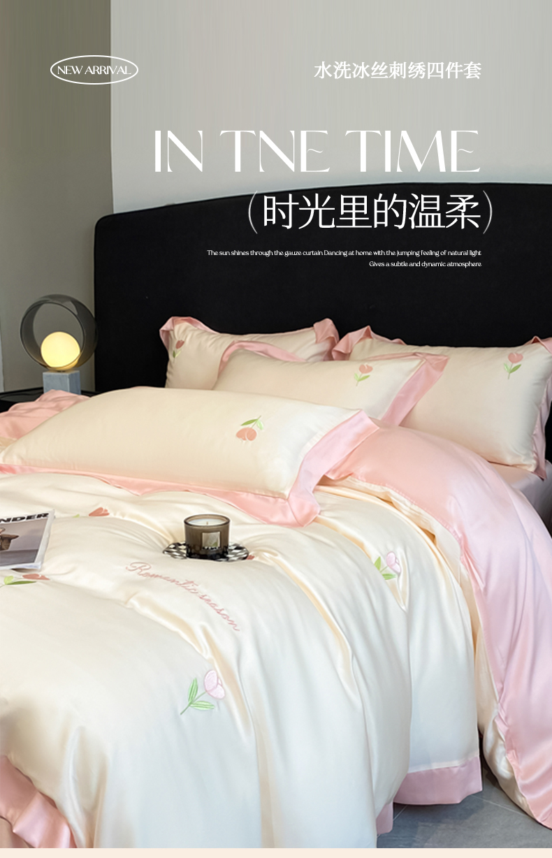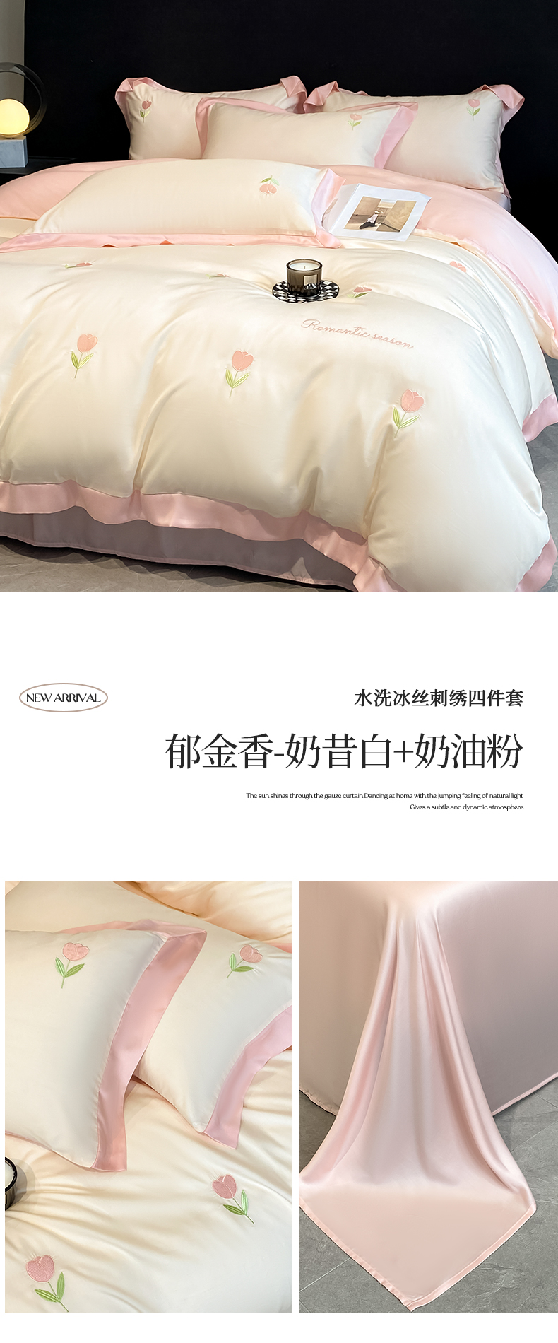 当前位置: 91家纺网 > 商品网购 > 床品套件 > 四件套 > 其它四件套 > 眷恋家纺 2024新款水洗冰丝刺绣四件套-花卉系列 郁金香-奶昔白+奶油粉