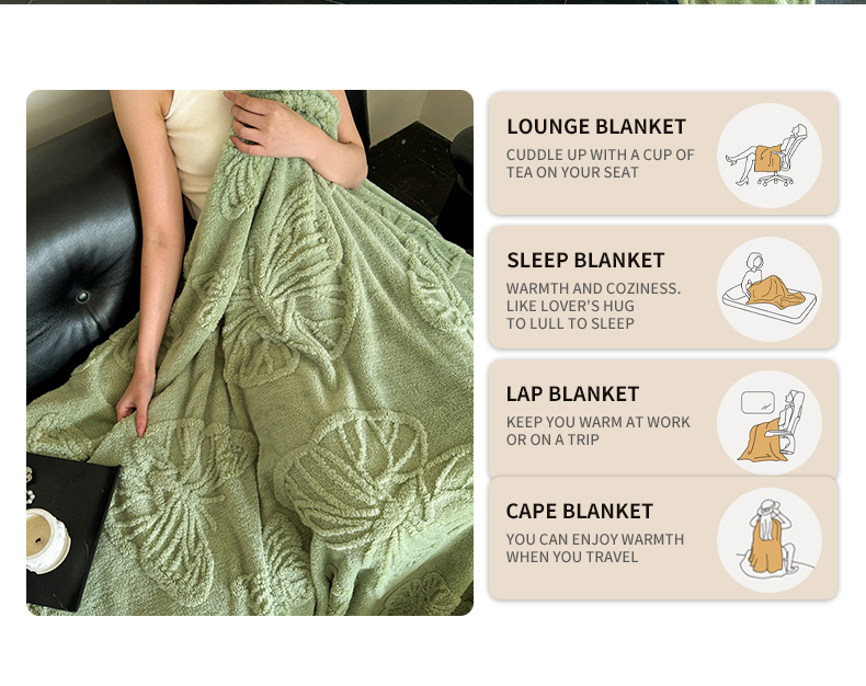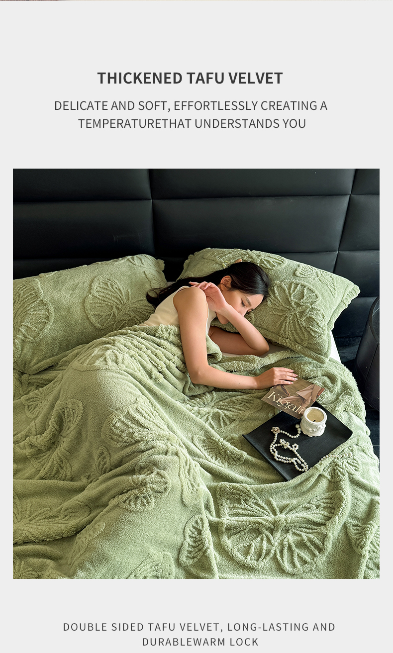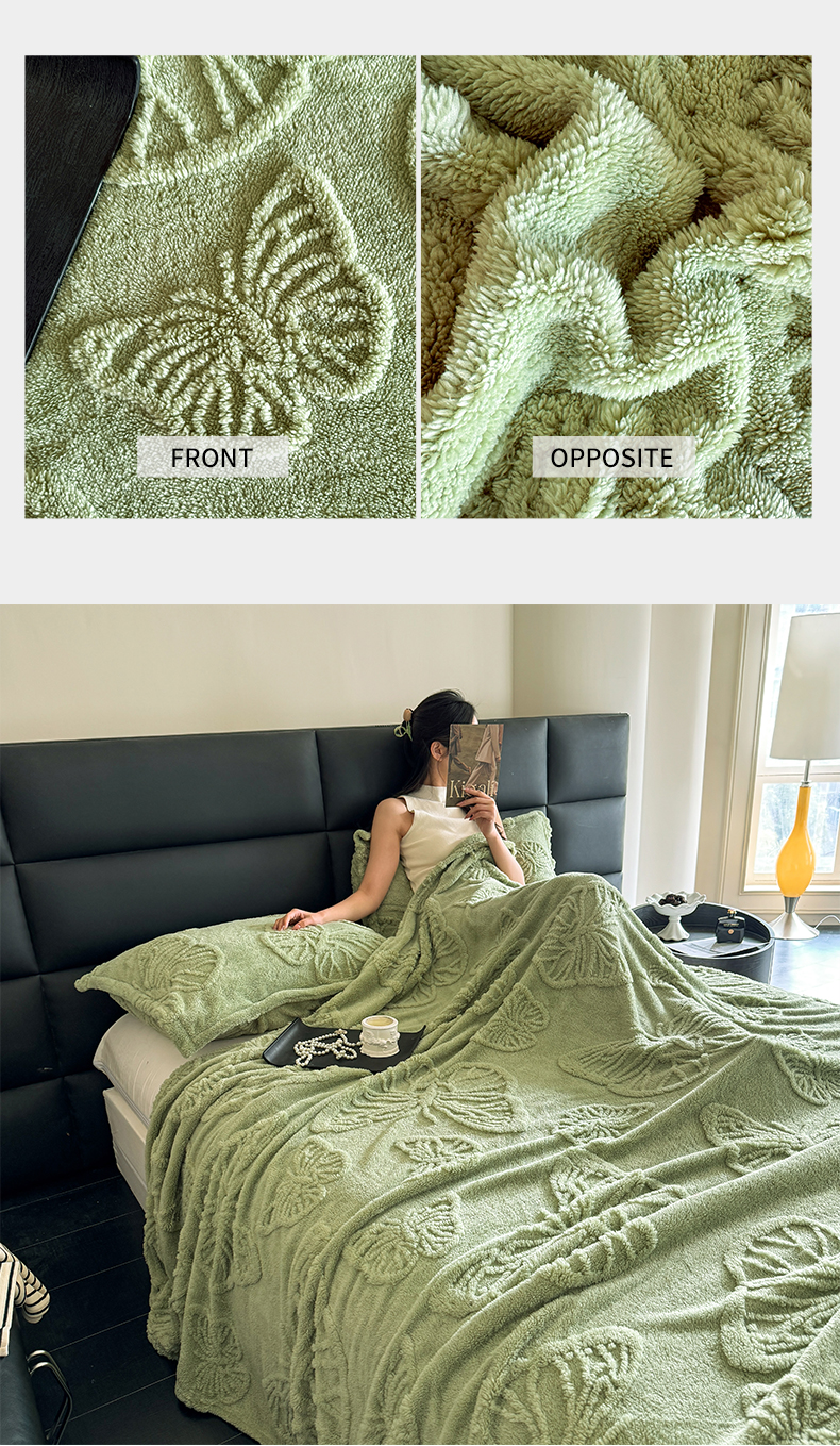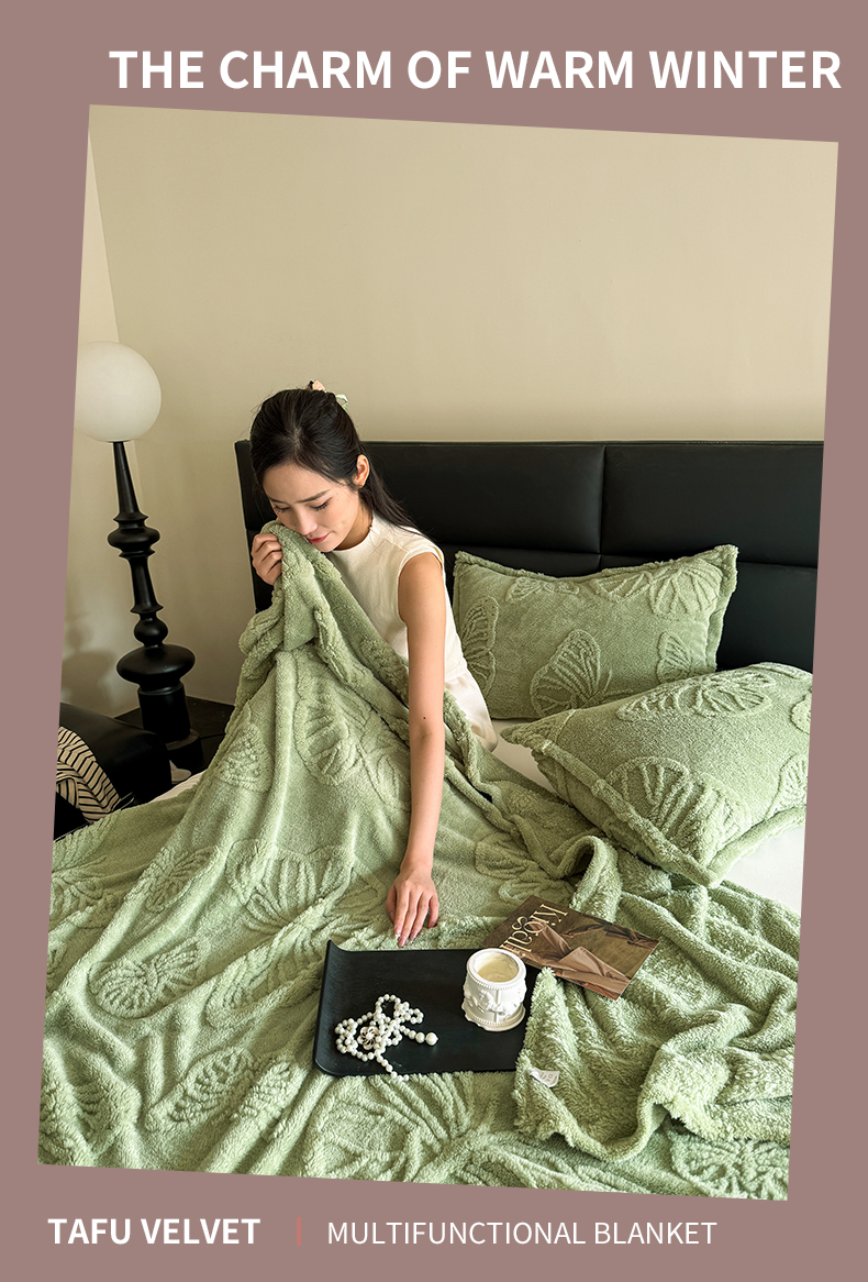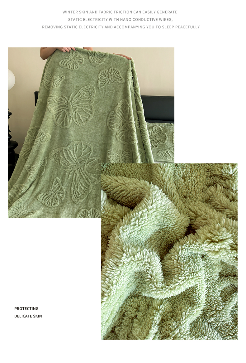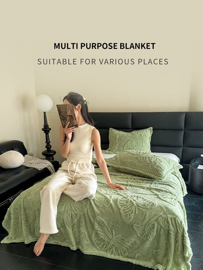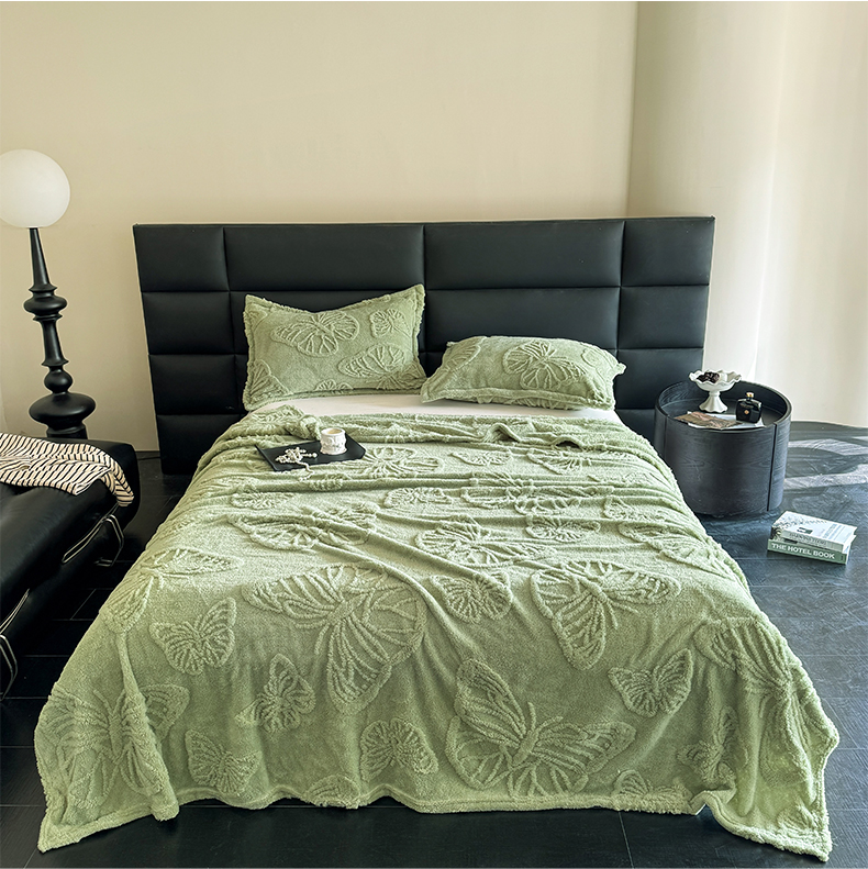 商品名称:2025款塔芙绒蝴蝶提花毛毯 纯色多功能休闲盖毯 爆款花型 电商/直播/外贸/跨境专供 蝴蝶绿