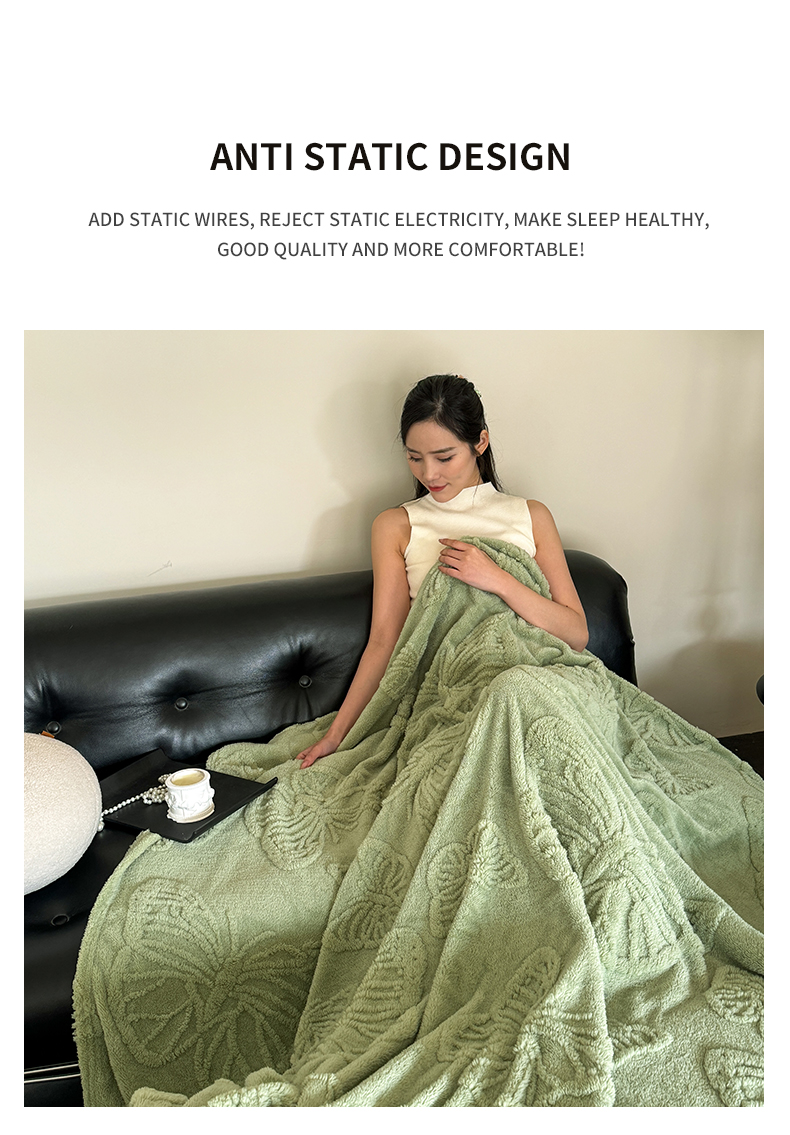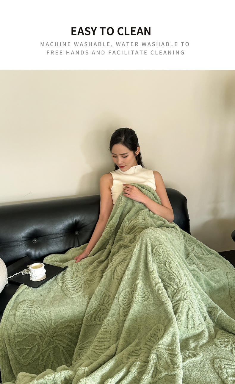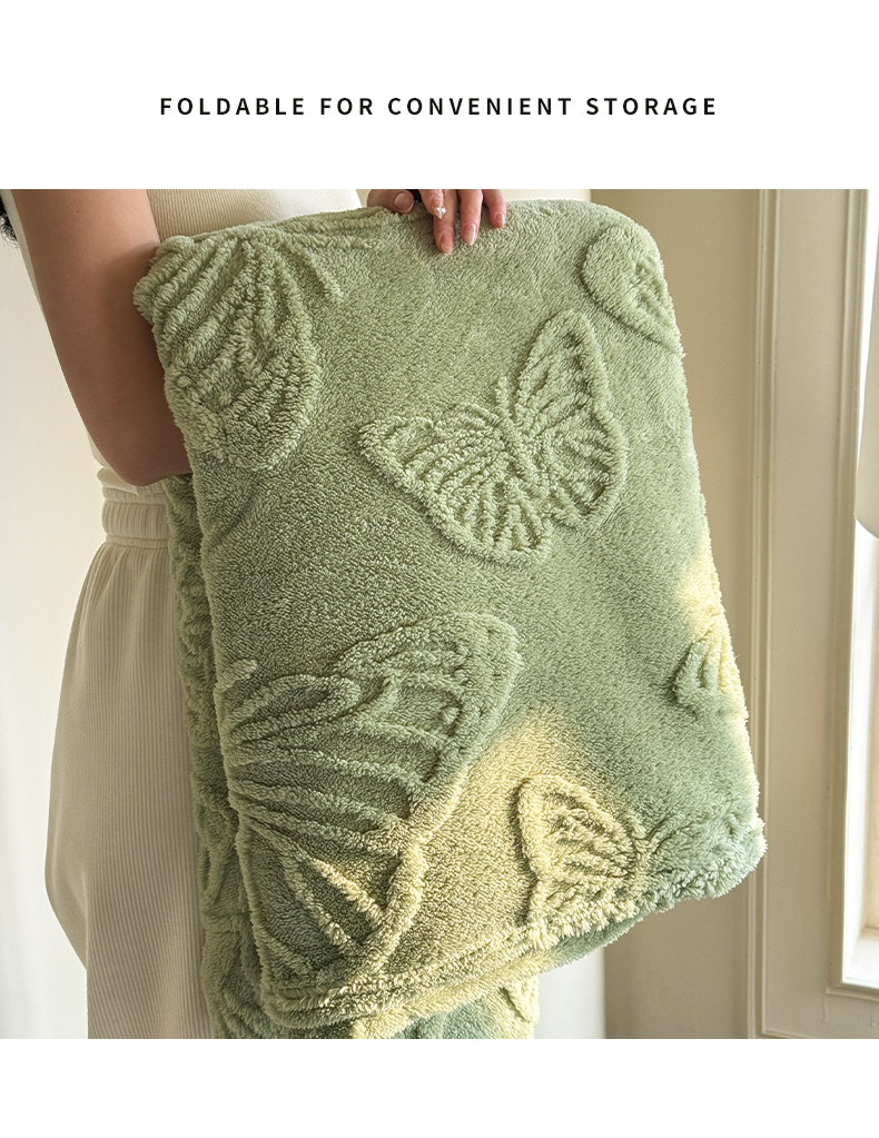 2025款塔芙绒蝴蝶提花毛毯 纯色多功能休闲盖毯 爆款花型 电商/直播/外贸/跨境专供 蝴蝶绿