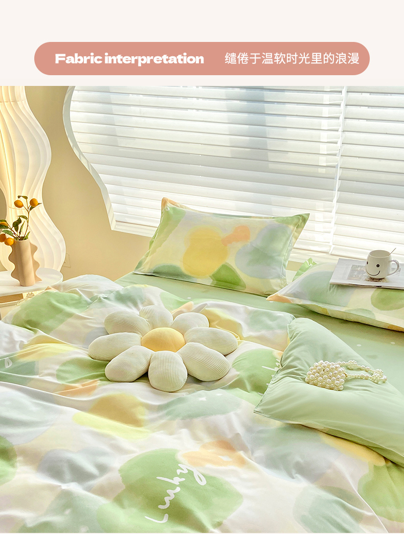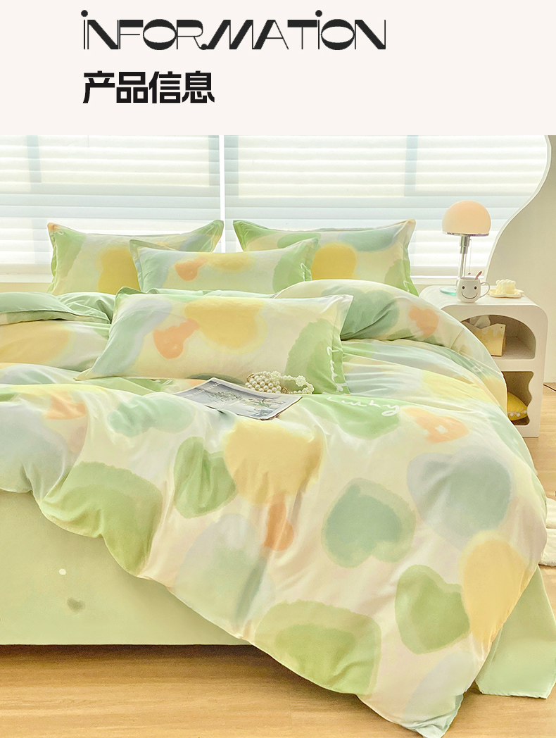 (总)楠沐家纺 2025年新款无印风学生印花四件套芦荟棉水洗棉,彩色波点,觅遇,晴空蓝格,亚麻灰格,烟雾灰格,英伦蓝格