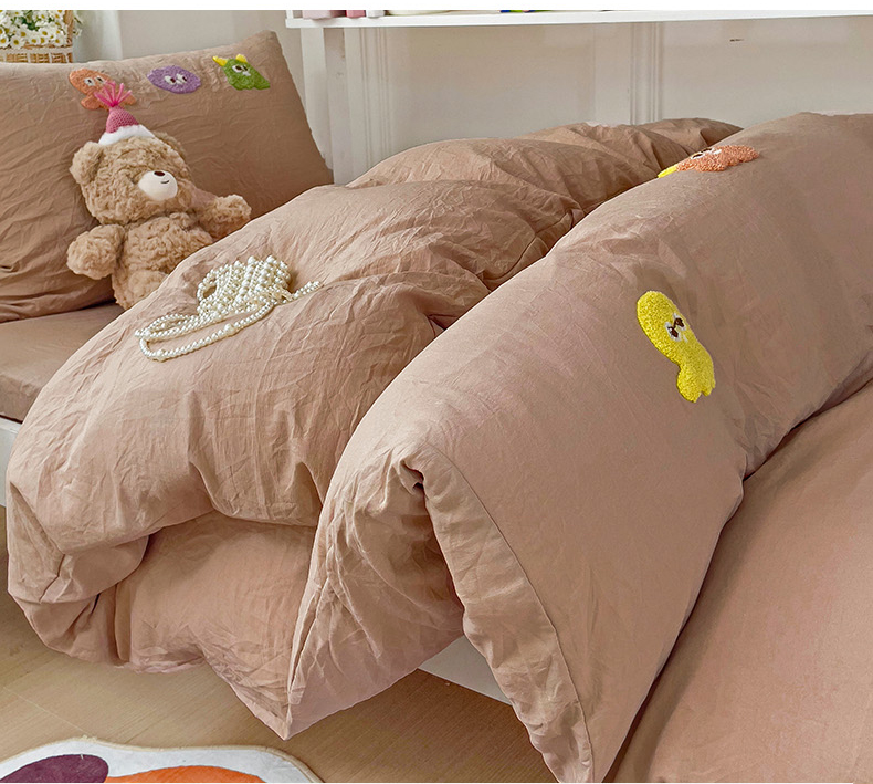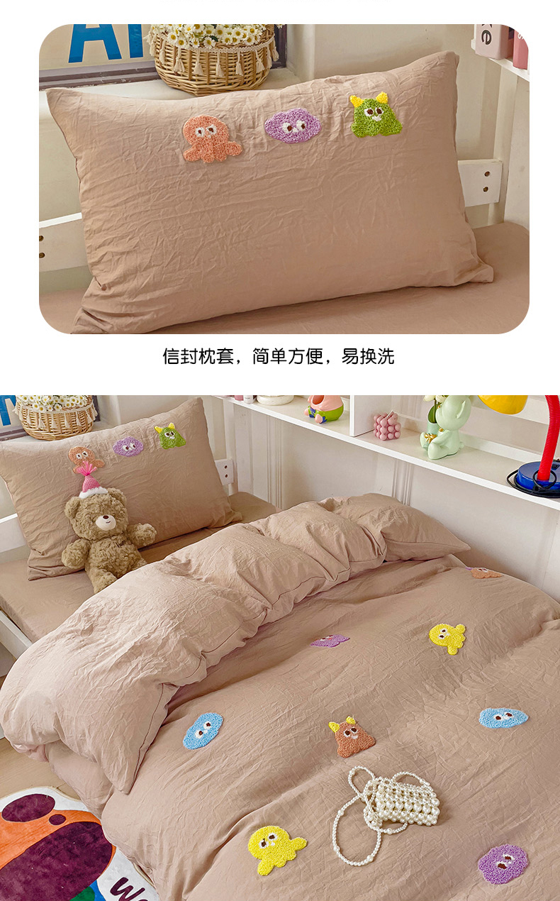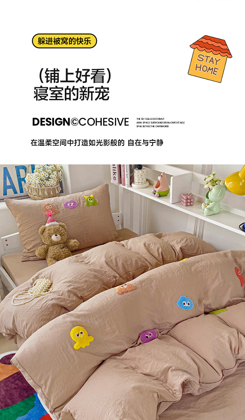 当前位置: 91家纺网 > 商品网购 > 床品套件 > 三件套 > 韩巢家纺 2024新款超柔水洗棉毛巾绣学生宿舍上下铺三件套四件套-小精灵系列 小精灵奶咖