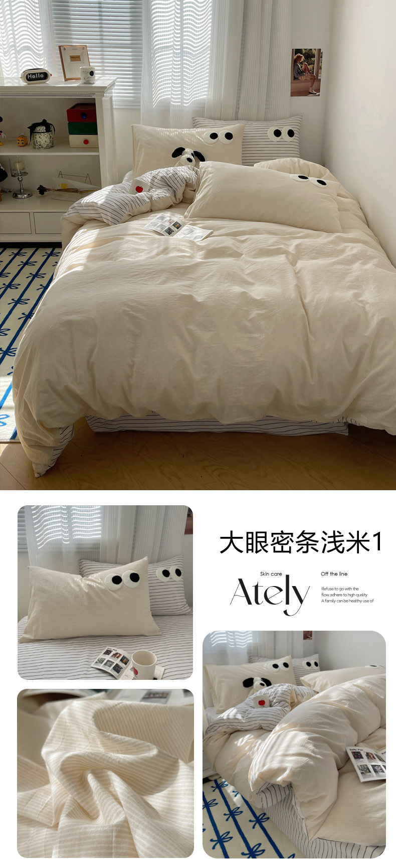 商品名称:丽涵家纺 2024新款全棉混搭色织水洗棉大眼学生四件套纯棉三件套 大眼蓝黄格2