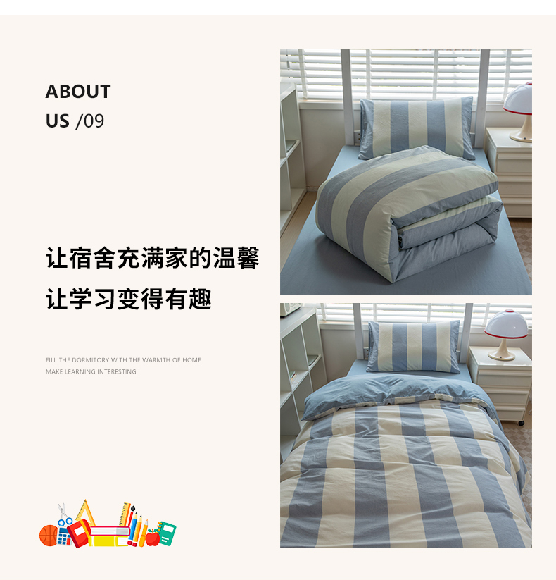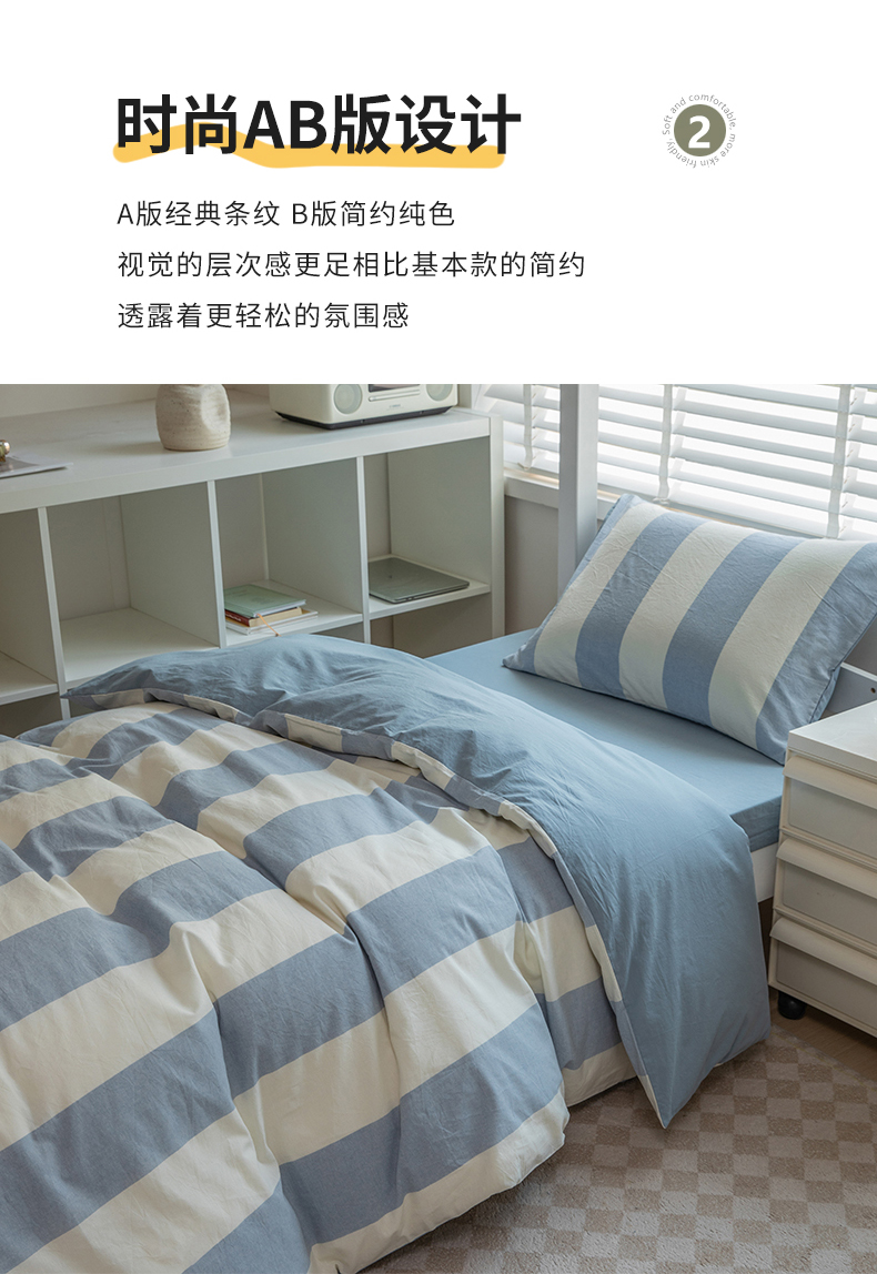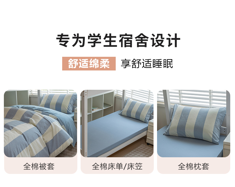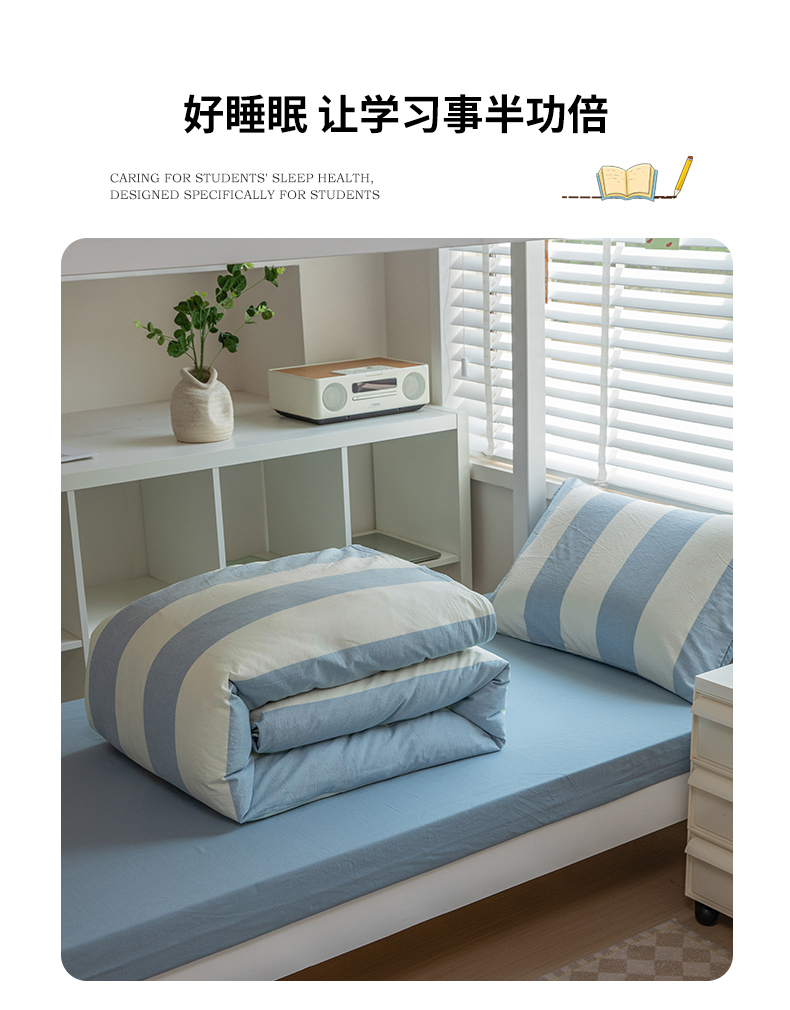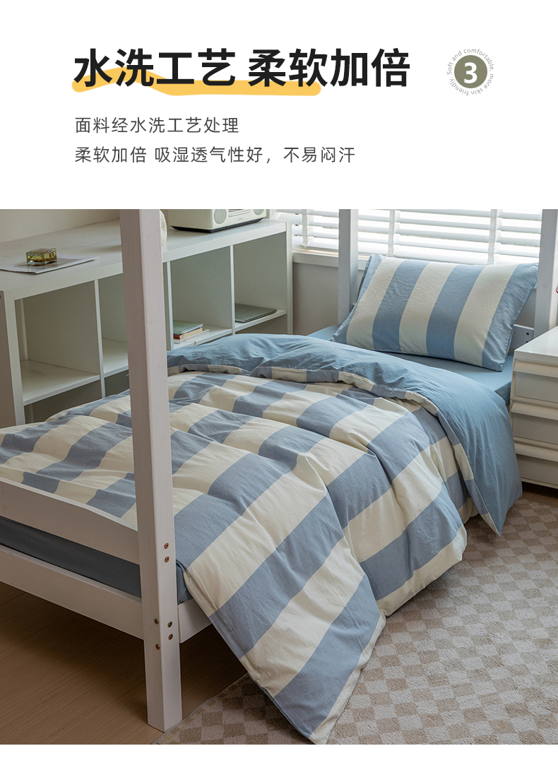 当前位置: 91家纺网 > 商品网购 > 床品套件 > 三件套 > 柠萌家居 2025新款无印良品风色织水洗棉A类学生宿舍三件套 初享时光-浅蓝