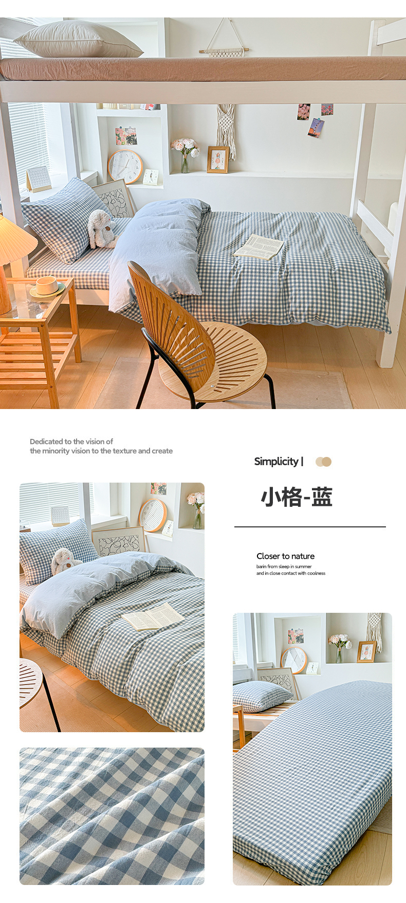 • 91家纺网 家纺一手货源 找家纺 雅萱家纺 2024新款色织全棉水洗棉床笠 小格-蓝
