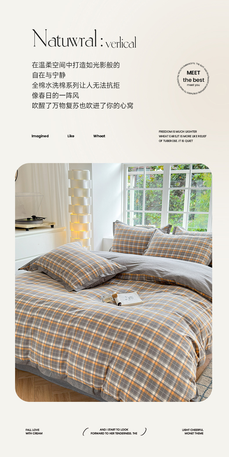 当前位置: 91家纺网 > 商品网购 > 床品套件 > 四件套 > 水洗棉四件套 > 宜家坊 2024新款全棉色织水洗棉宽边断角四件套 小幸运-橙灰