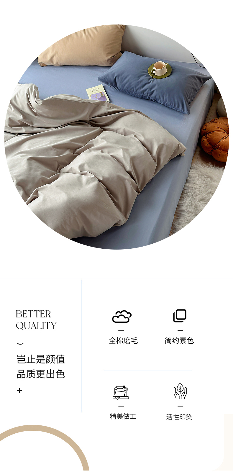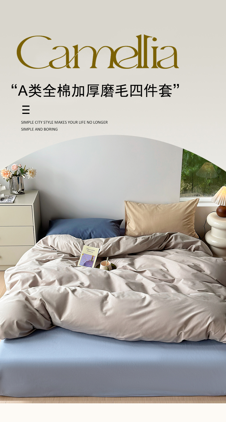 当前位置: 91家纺网 > 商品网购 > 床品套件 > 四件套 > 普通磨毛四件套 > 绫韵家纺 2024秋冬新款A类全棉加厚磨毛混搭纯棉磨毛四件套 灰咖·光辉·青黛·米驼