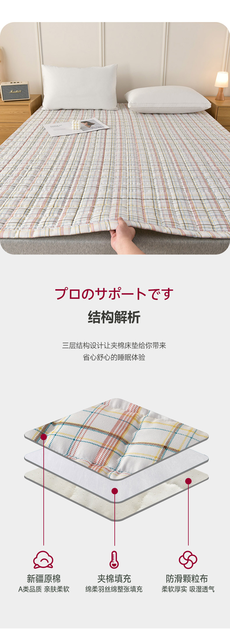 当前位置: 91家纺网 > 商品网购 > 床垫/床褥 > 普通床垫 > 艾兜坊 2024新款可水洗原棉夹棉床垫 小细格-粉