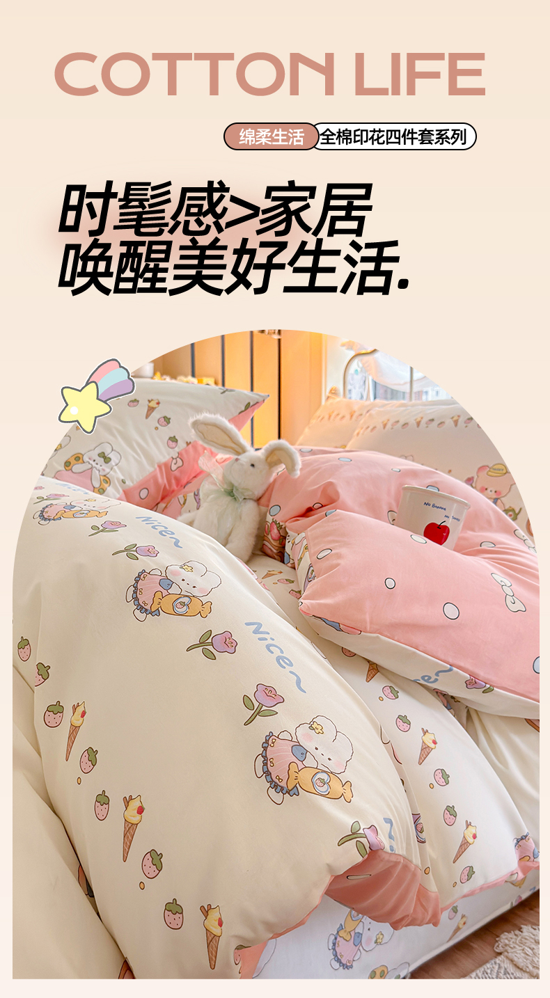 当前位置: 91家纺网 > 商品网购 > 床品套件 > 四件套 > 全棉普通四件套 > 名兮 2024新款全棉亲肤印花四件套 青梅竹马