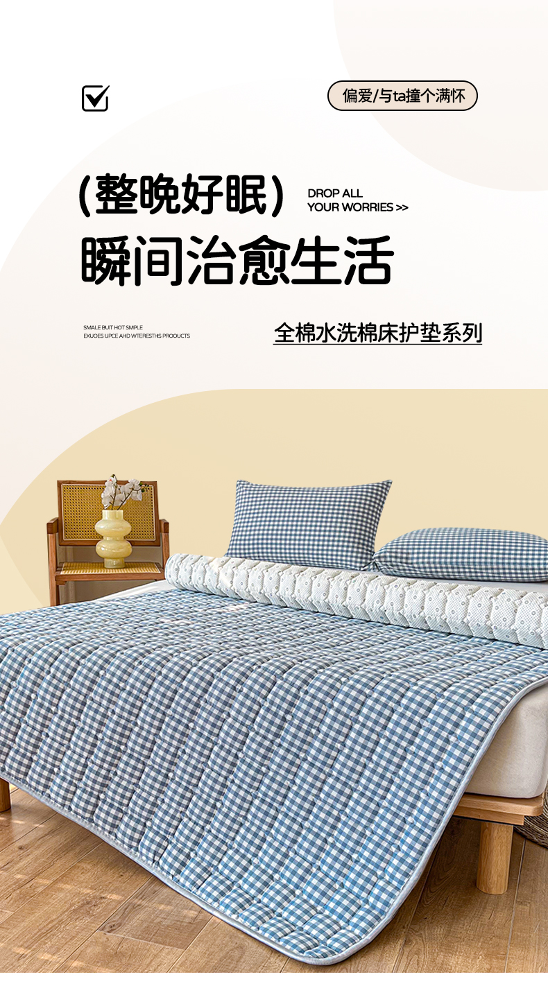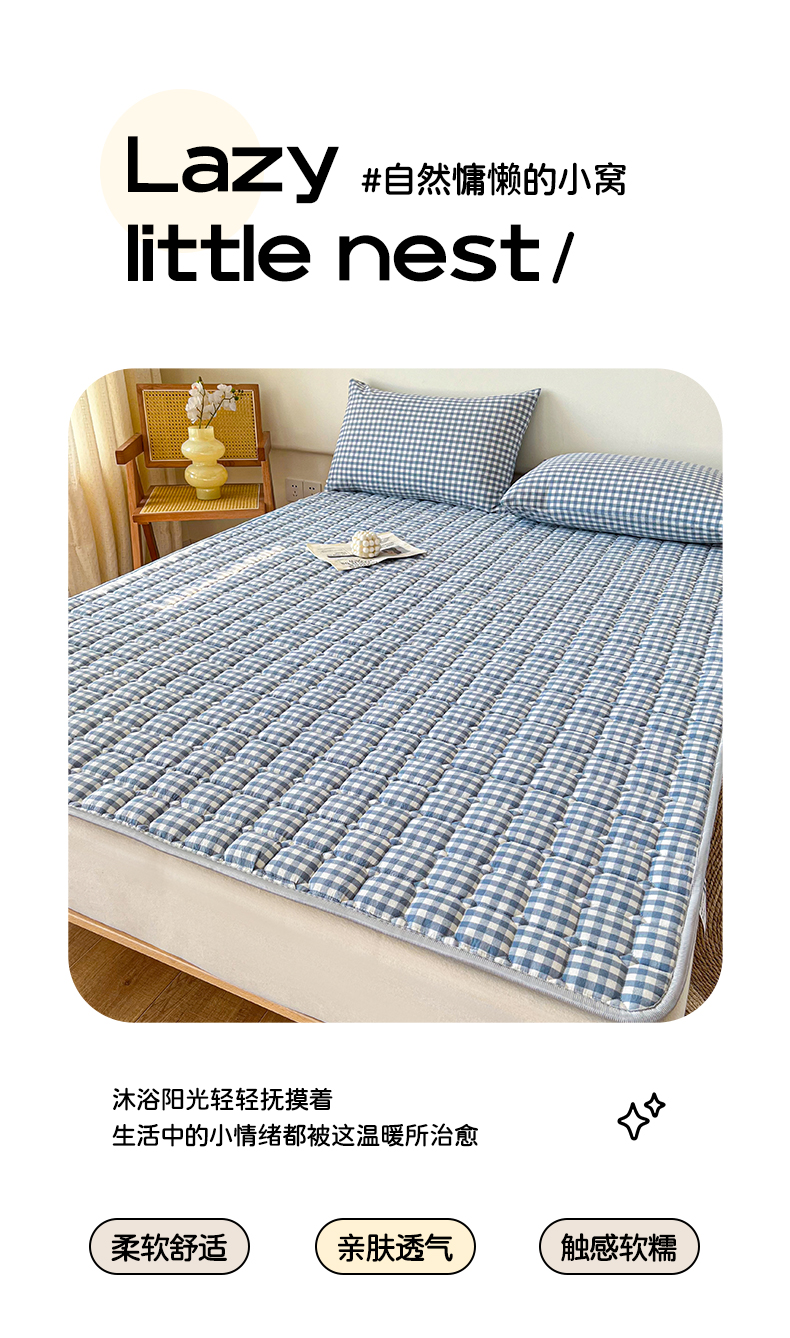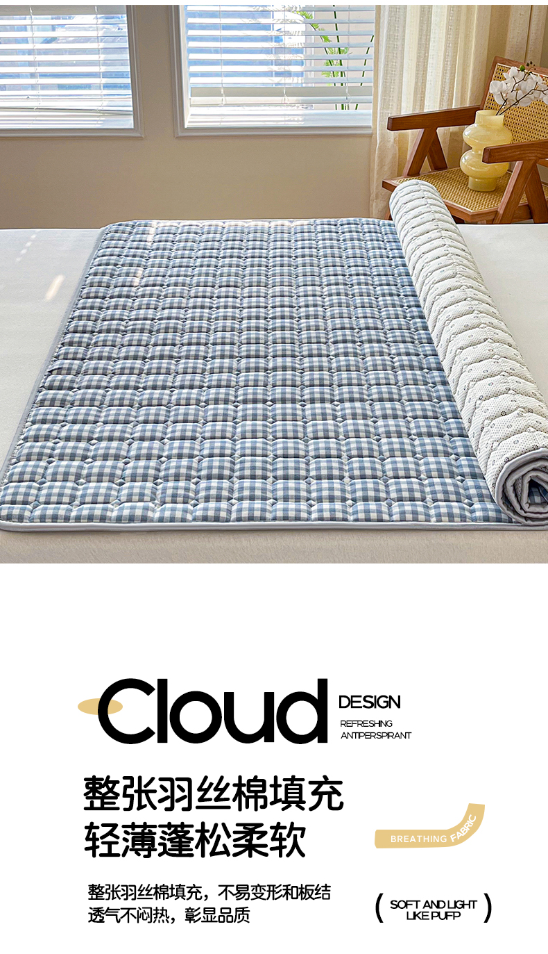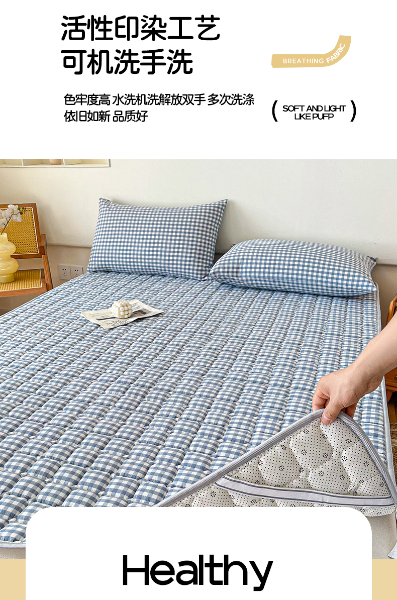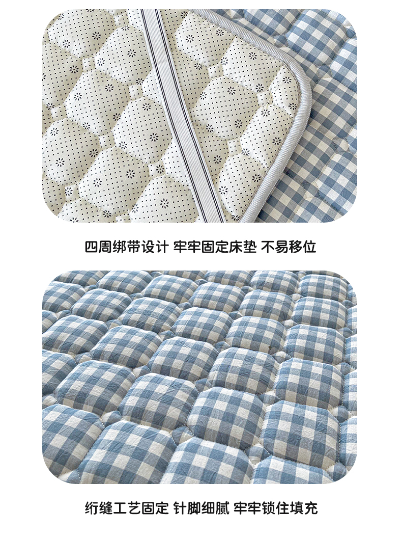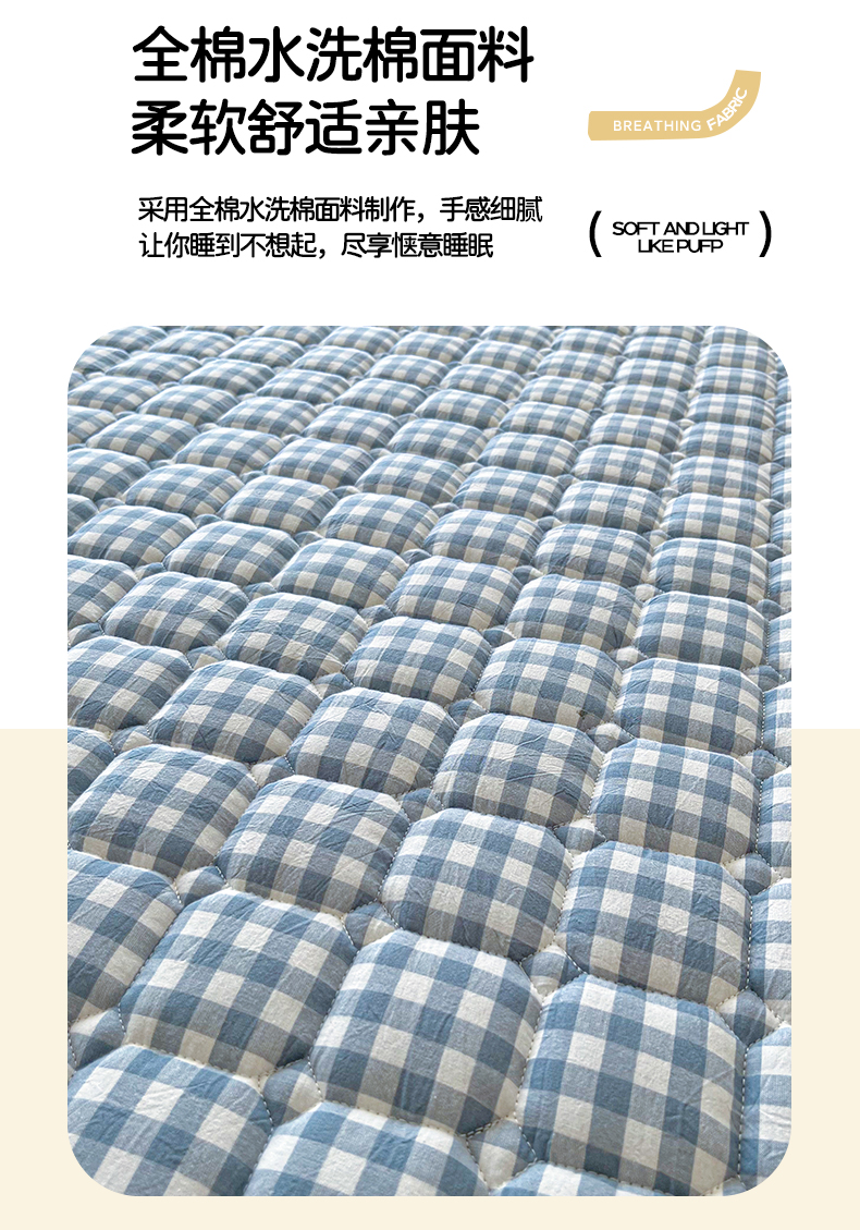 当前位置: 91家纺网 > 商品网购 > 床垫/床褥 > 普通床垫 > 卡伦家纺 2025新款全棉色织水洗棉夹棉床垫席梦思保护垫 浅蓝小格