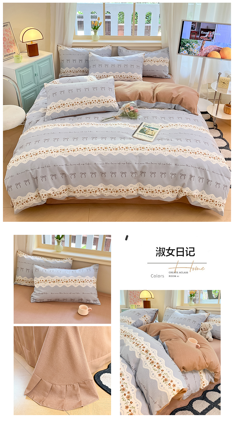 当前位置: 91家纺网 > 商品网购 > 床品套件 > 四件套 > 普通磨毛四件套 > 莱米家纺 2024新款全棉加厚磨毛印花四件套 淑女日记