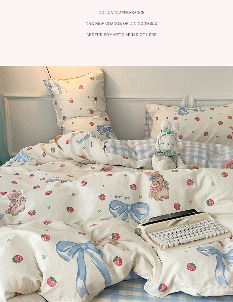 2024新款13070跑量款全棉四件套--卡通系列 蝴蝶结草莓兔