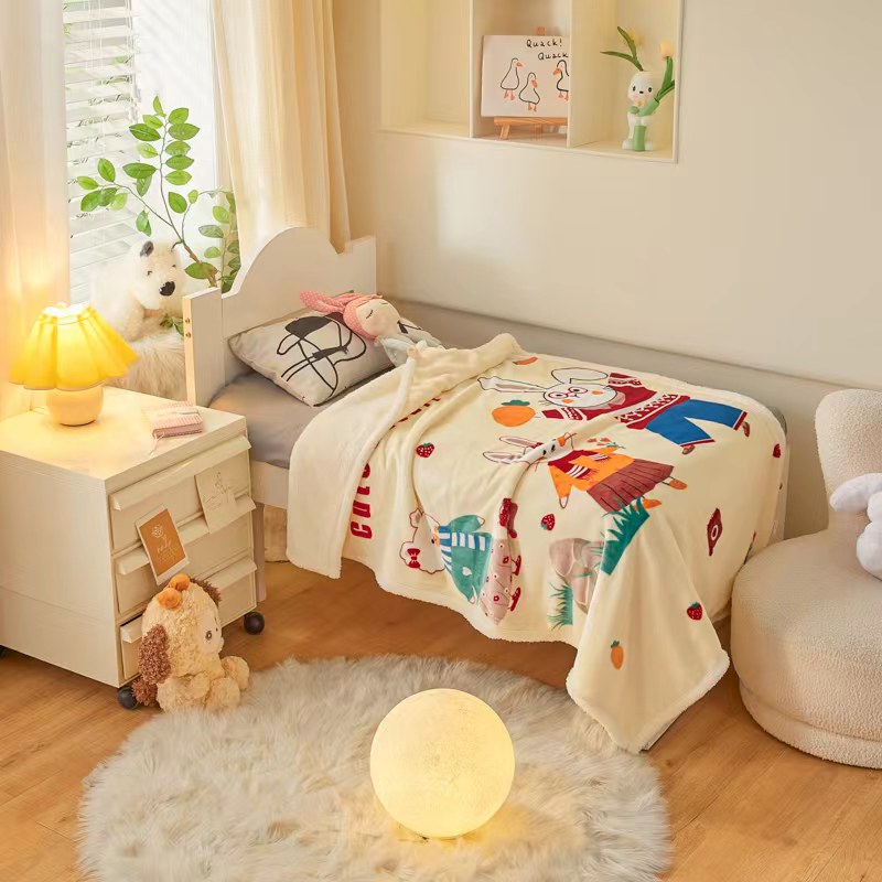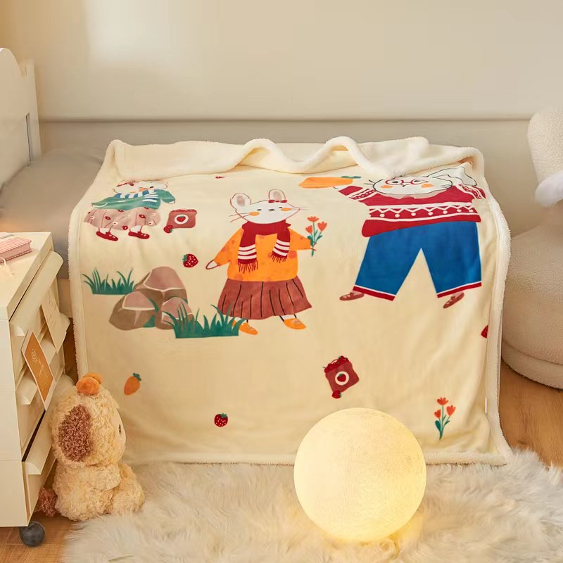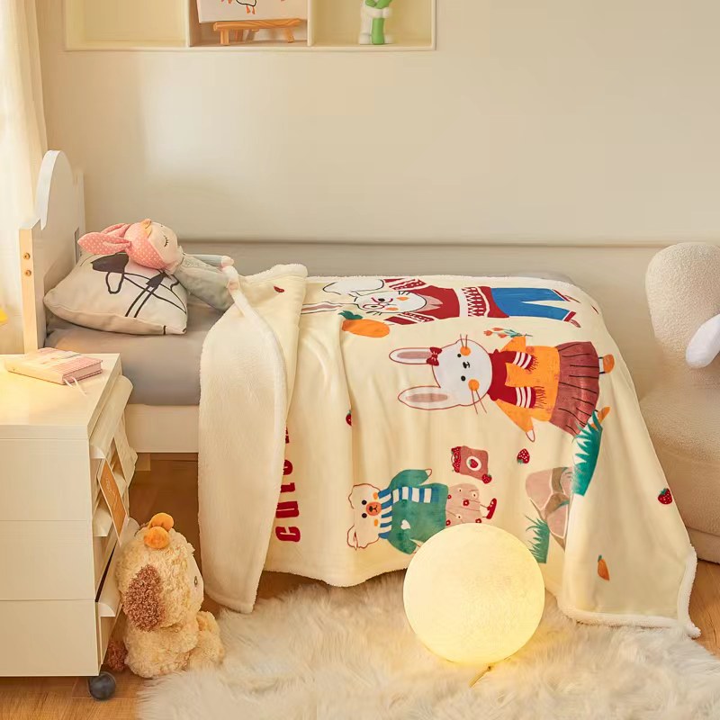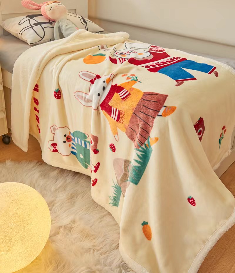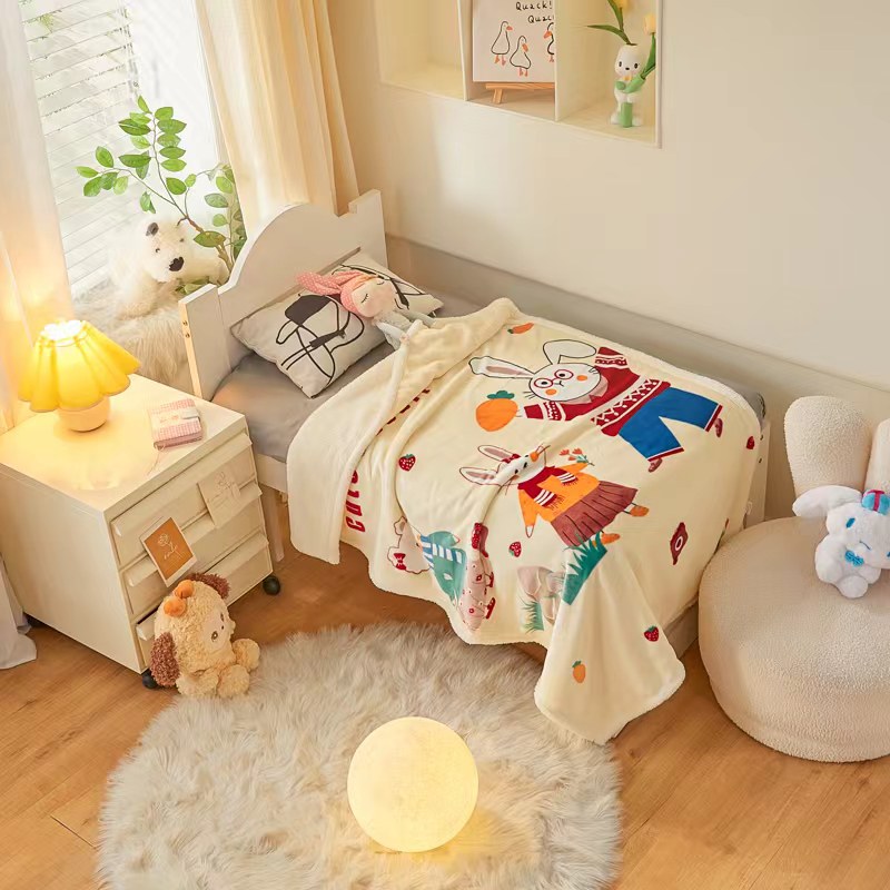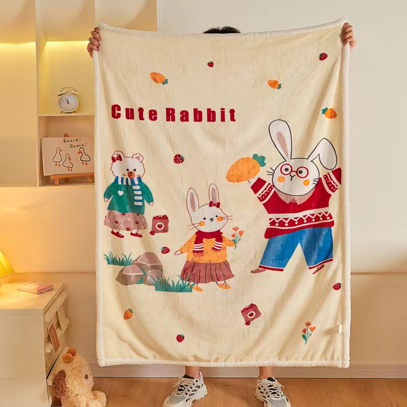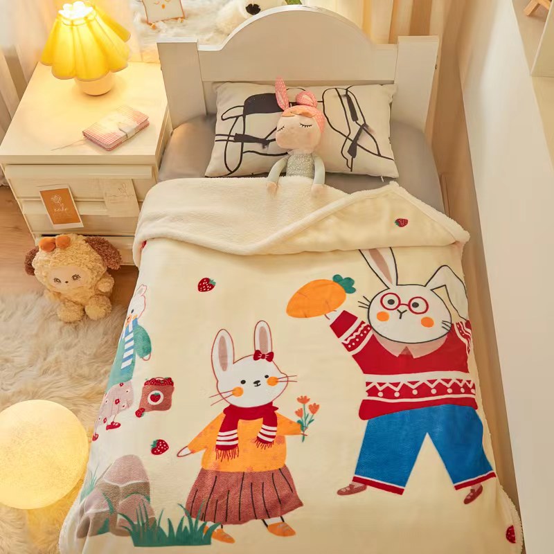茗婷家纺 2025款羊羔绒双层加厚保暖儿童毛毯云毯供外贸跨境亚马逊TRMU 小白兔