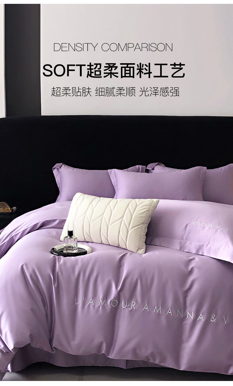 商品名称:禧澜庭 2024新款高支纯棉全棉斜纹四件套刺绣绣花款轻奢三件套 星辰紫