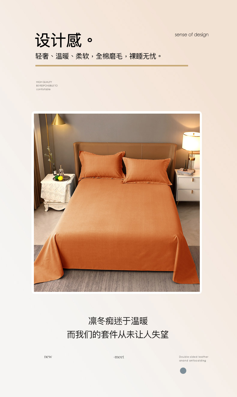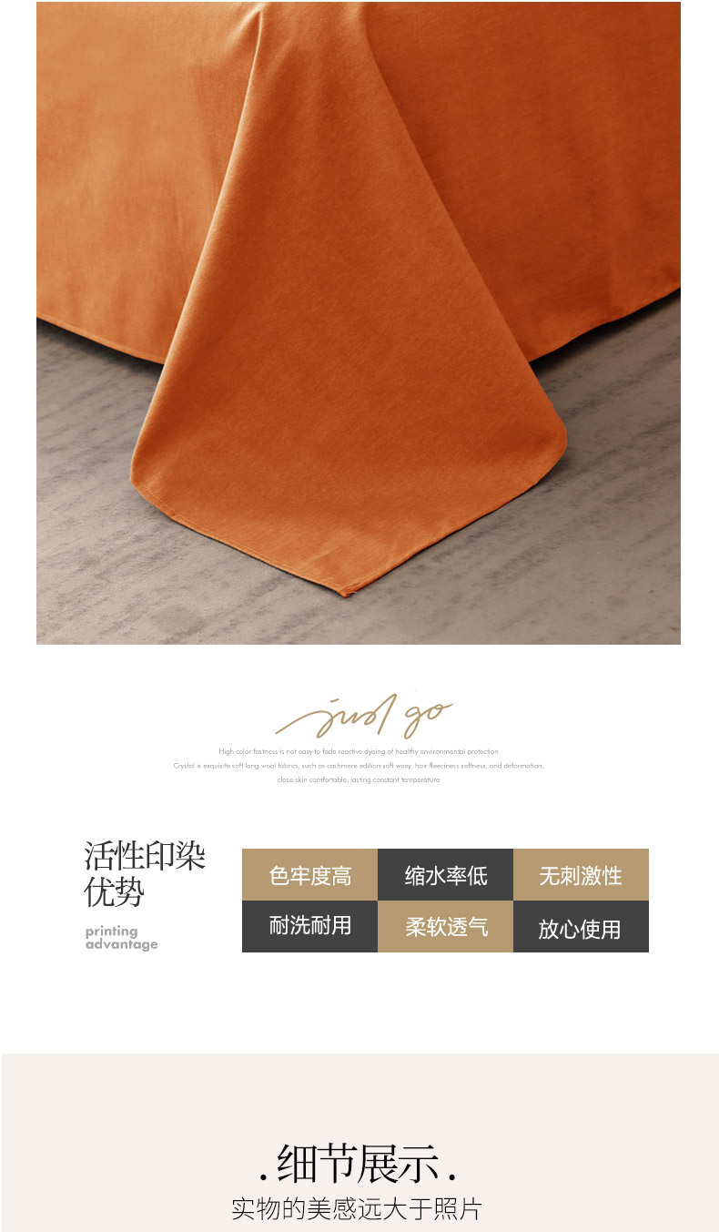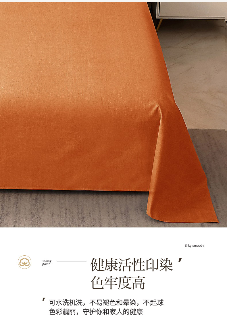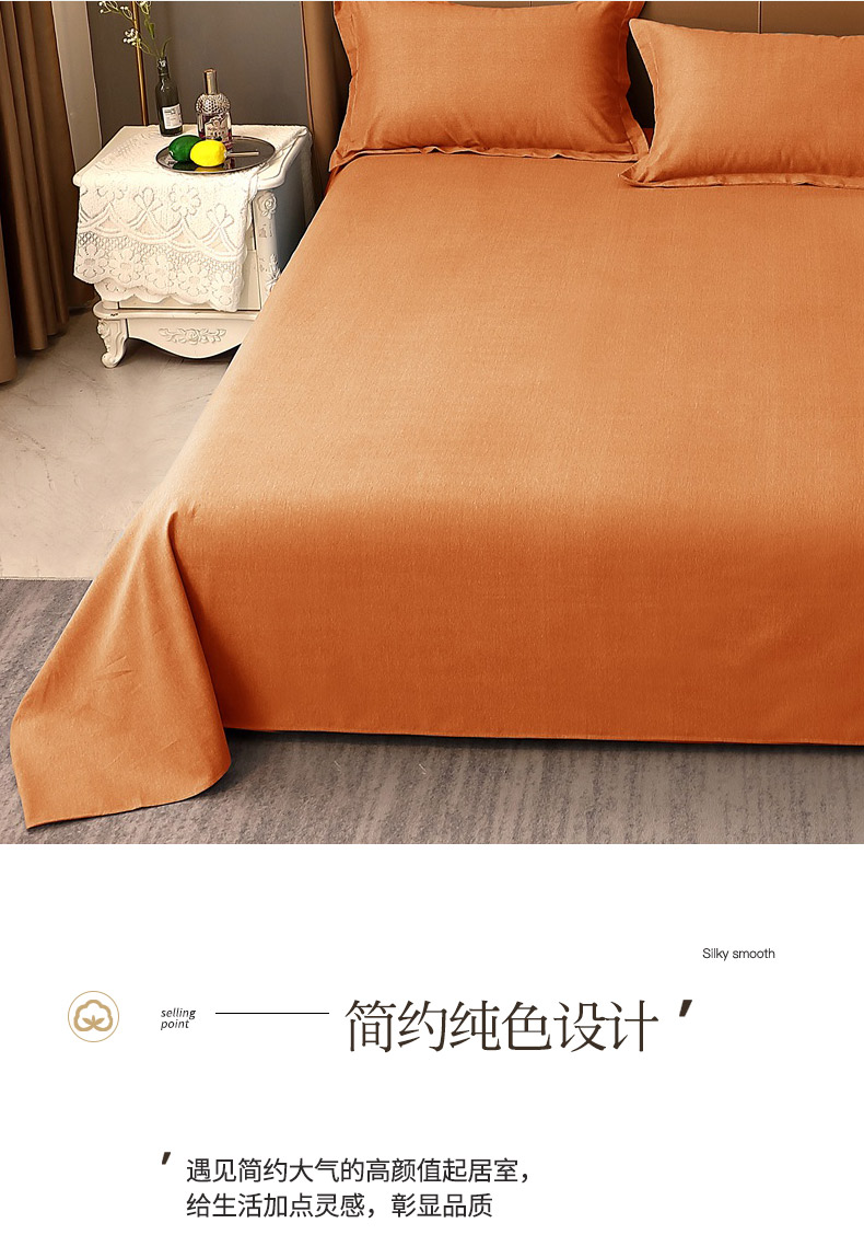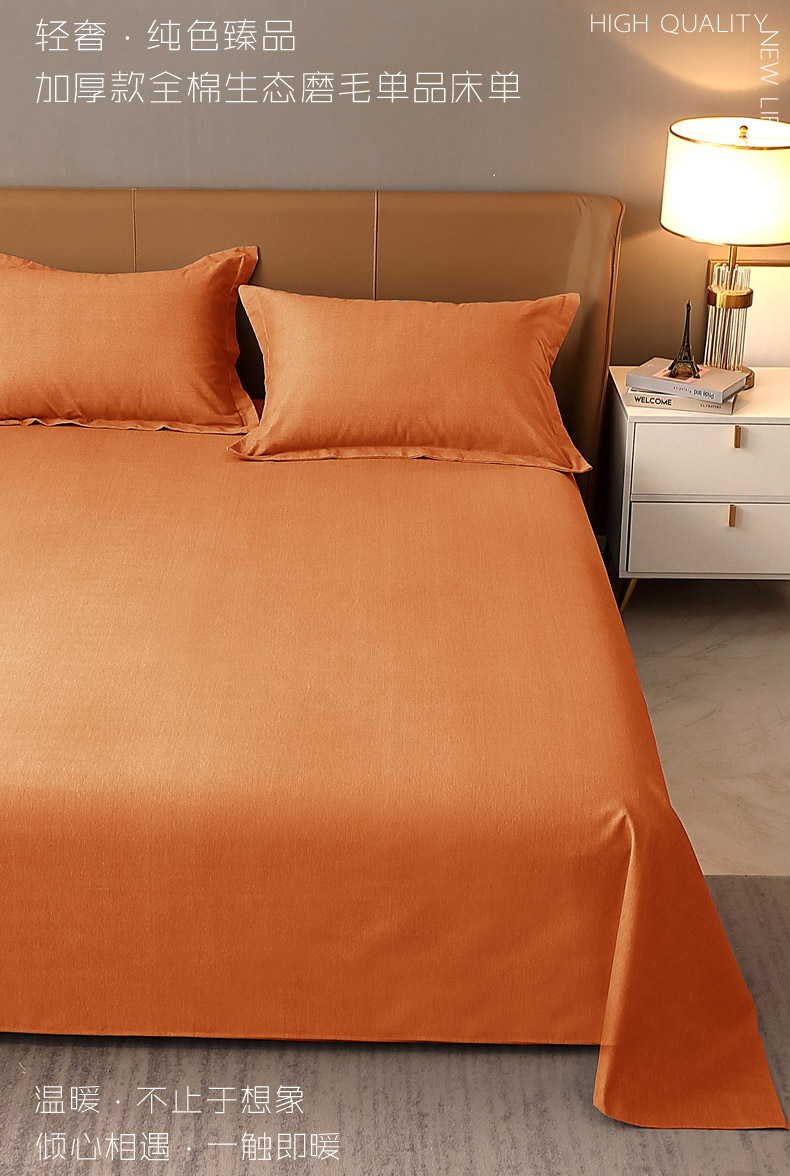 商品名称:晶缦家纺 2024新款加厚纯棉喷气全棉纯色生态磨毛多规格单品床单 纯依-时尚桔