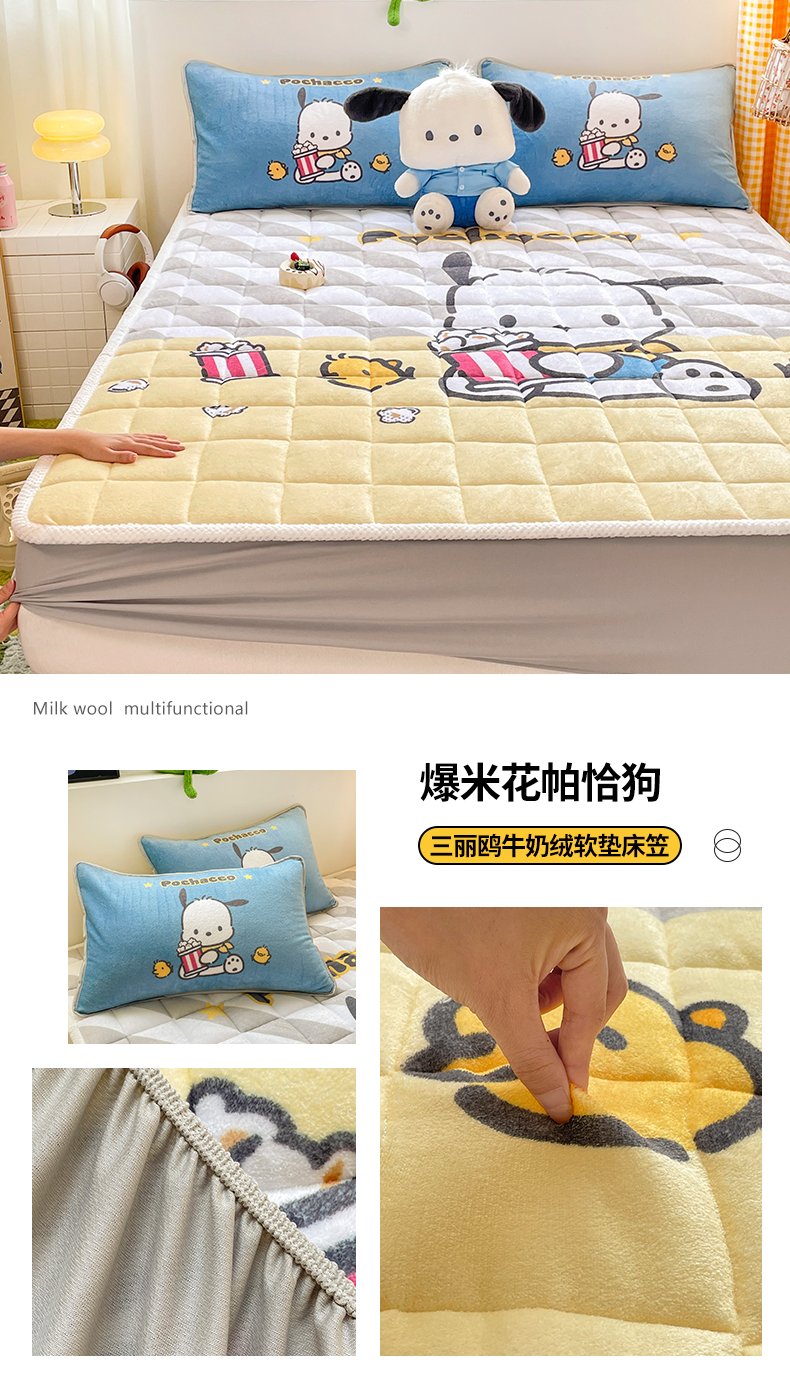 商品名称:米帛家纺 2024新款三丽鸥印花牛奶绒床笠 爆米花帕恰狗