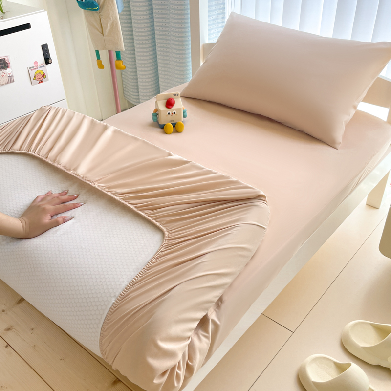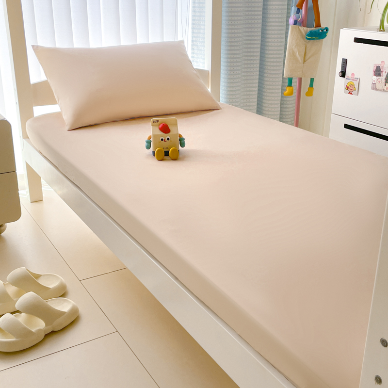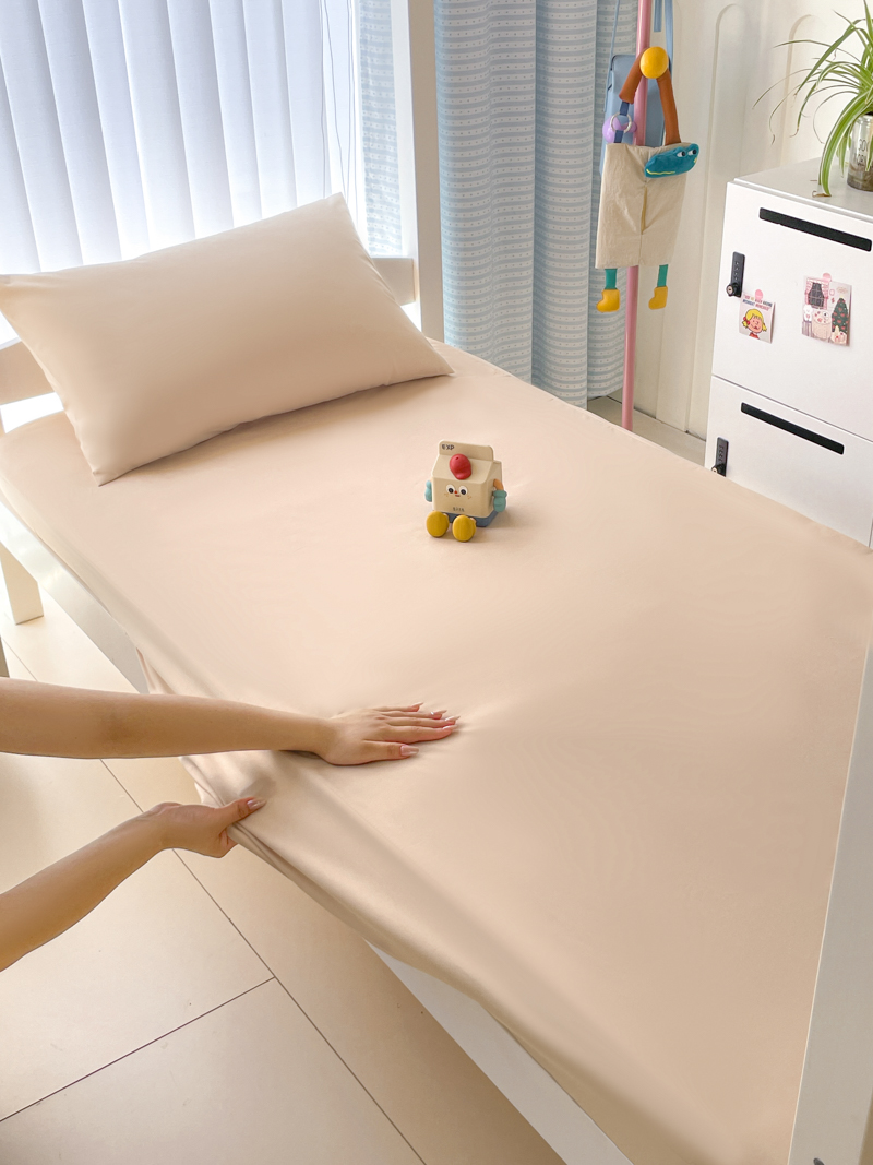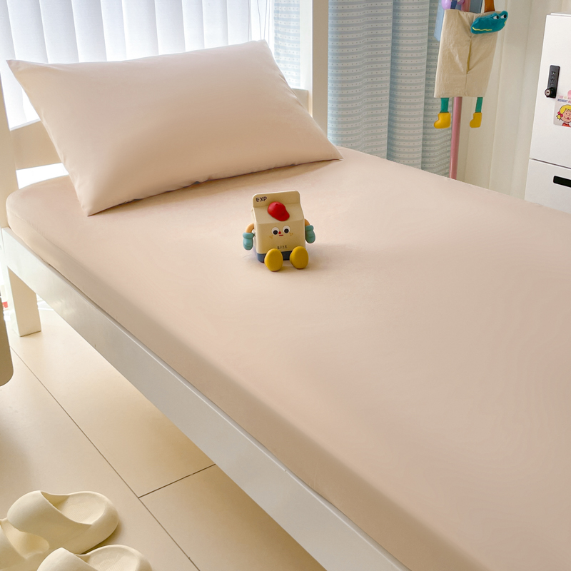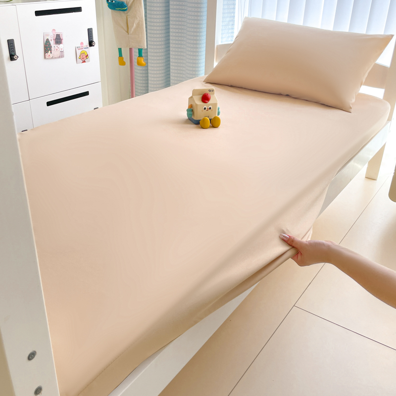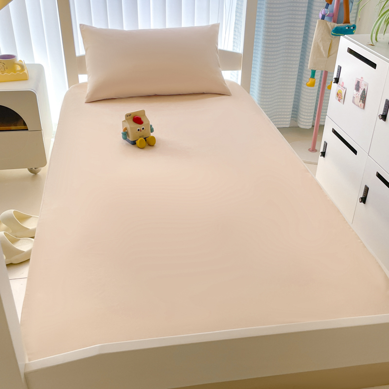 商品名称:老帅的工厂店 2025新款亲肤磨毛防水纯色学生床笠-小床图 杏色