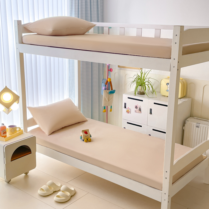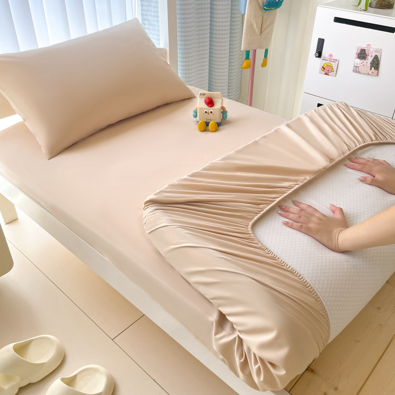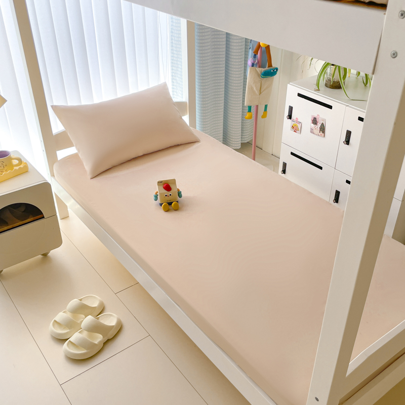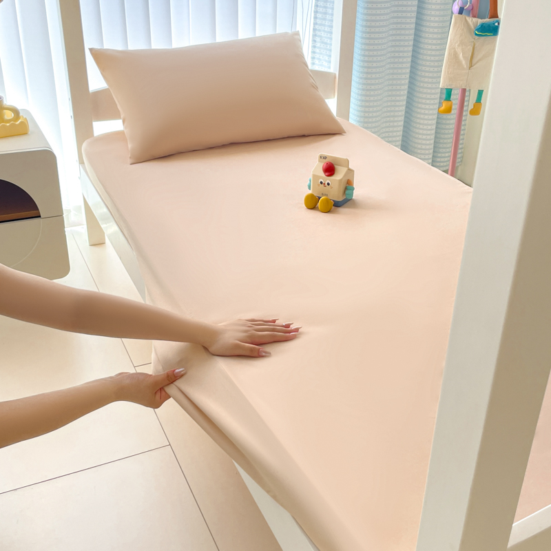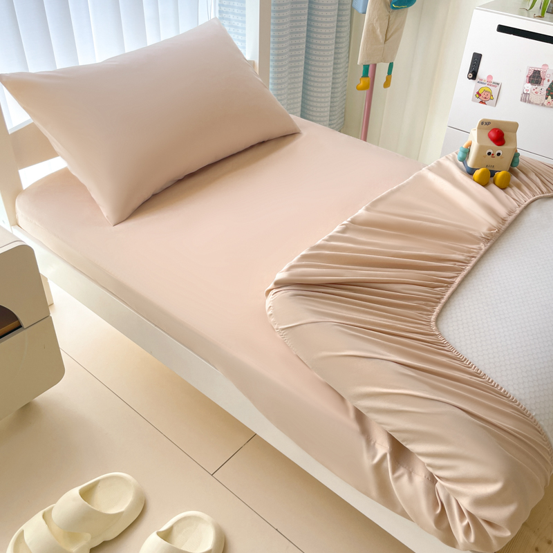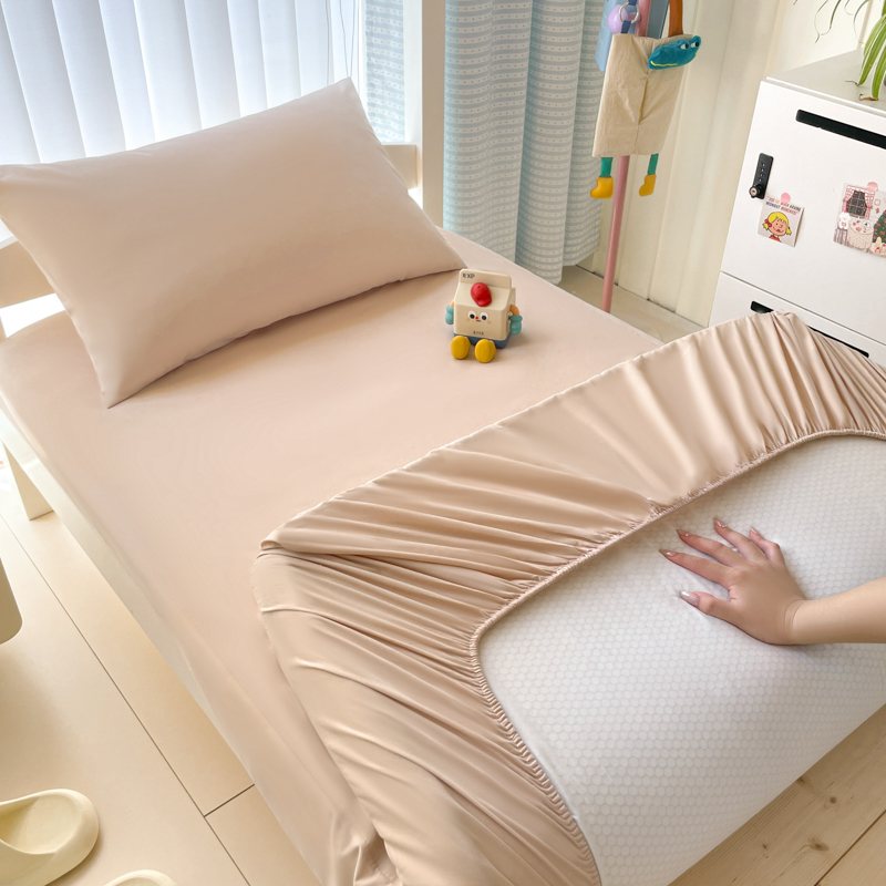 商品名称:老帅的工厂店 2025新款亲肤磨毛防水纯色学生床笠-小床图 杏色