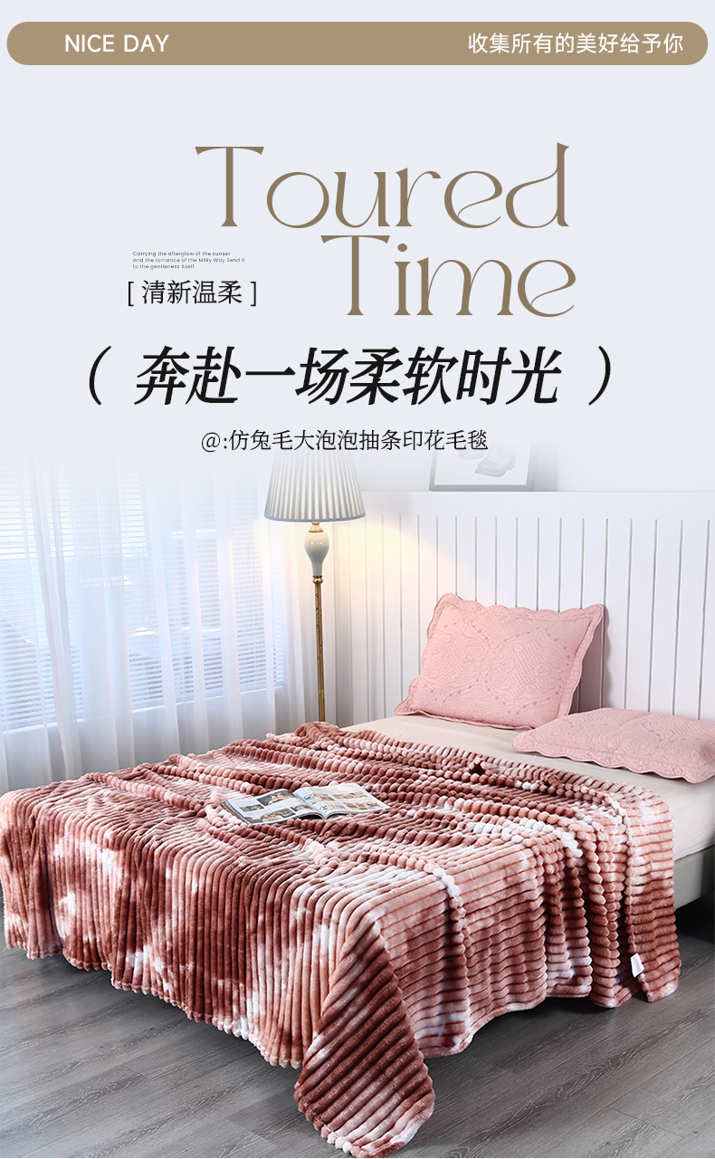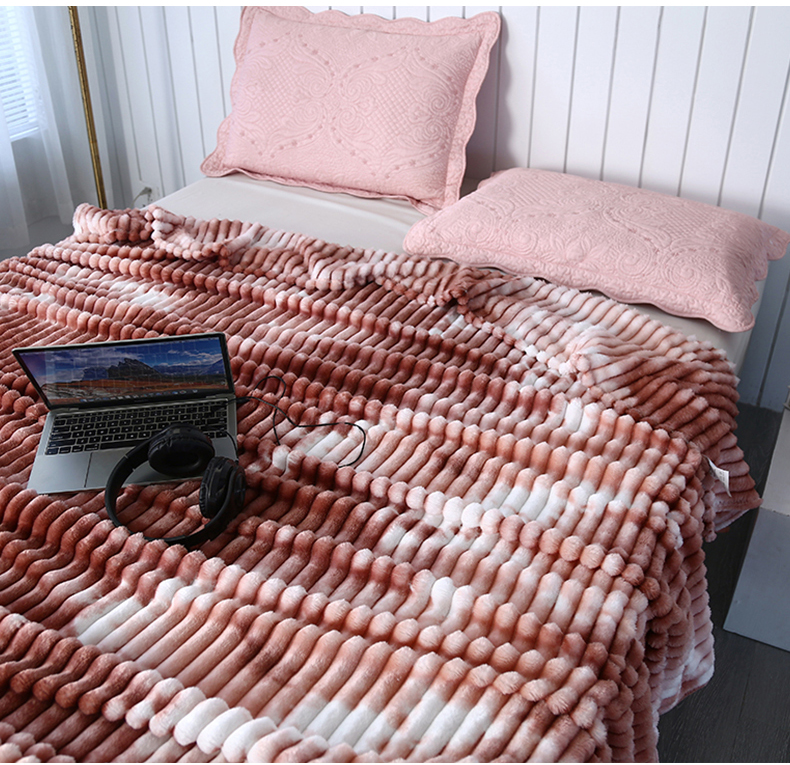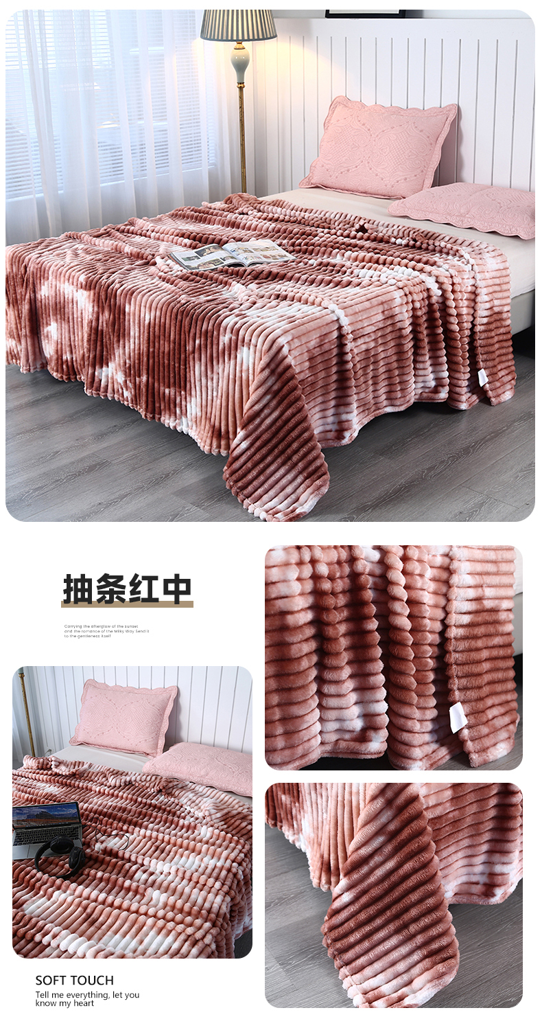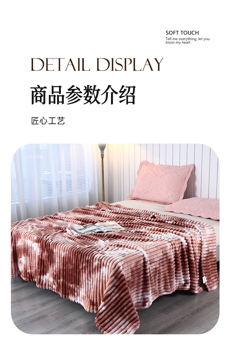 (总)美洲琳 2025新款提花简约珊瑚绒法莱绒毯毛毯毯子,白色,粉色,咖色,蓝灰,绿色,深灰