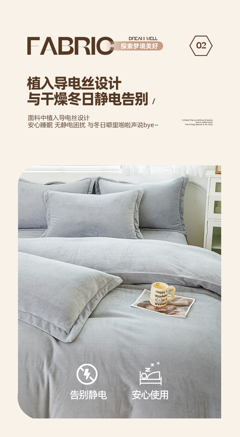 当前位置: 91家纺网 > 商品网购 > 床品套件 > 四件套 > 牛奶绒四件套 > 锦罗绣 2024新款230克纯色牛奶绒四件套 浅灰
