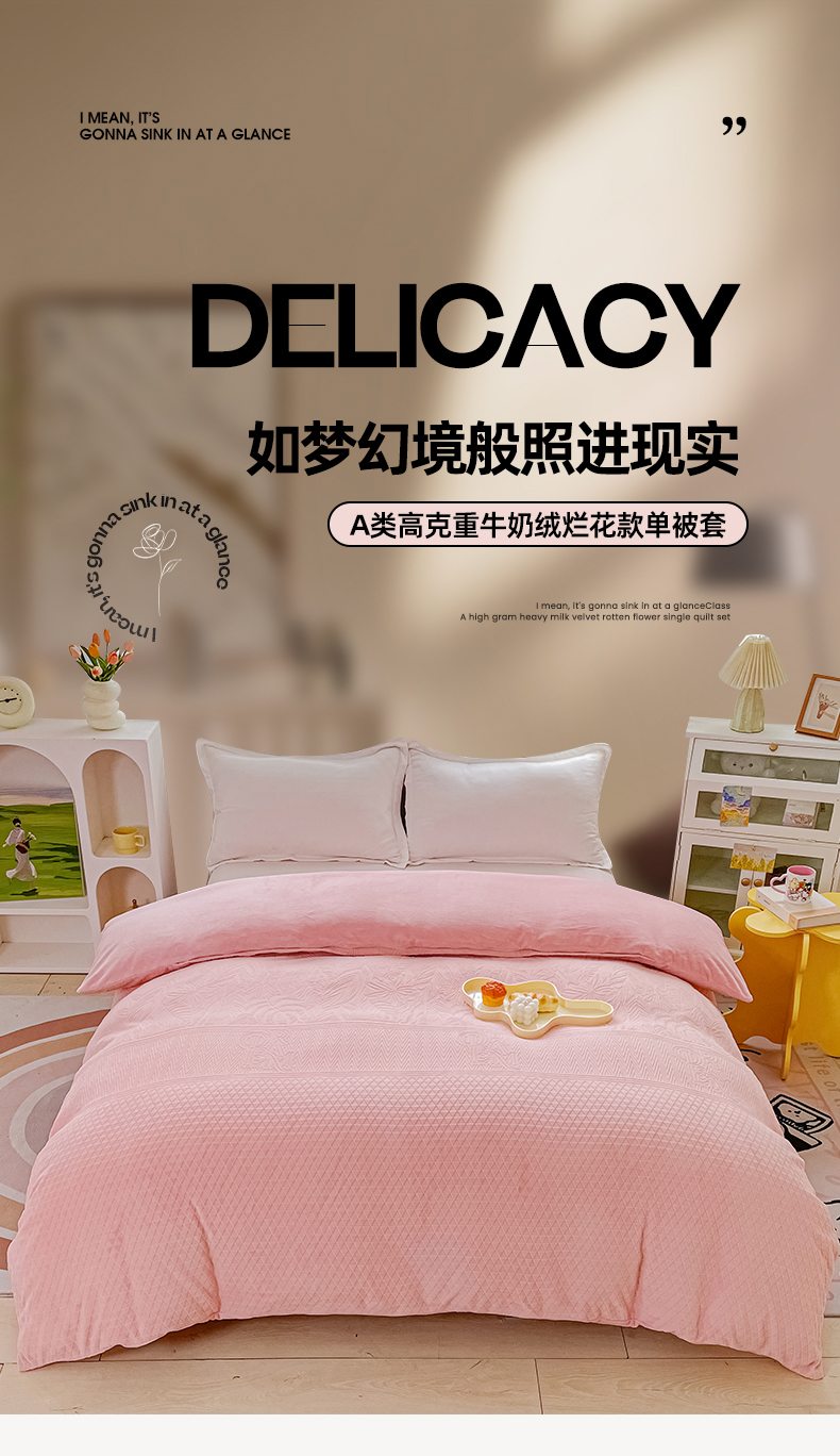 • 91家纺网 家纺一手货源 找家纺 锦罗绣 2024新款全消光230克牛奶绒烂花绒提花单被套 格韵