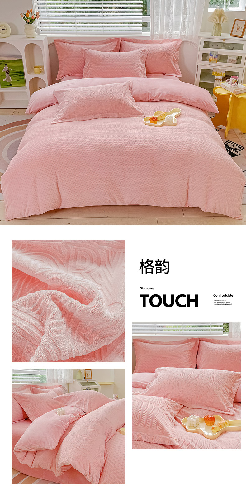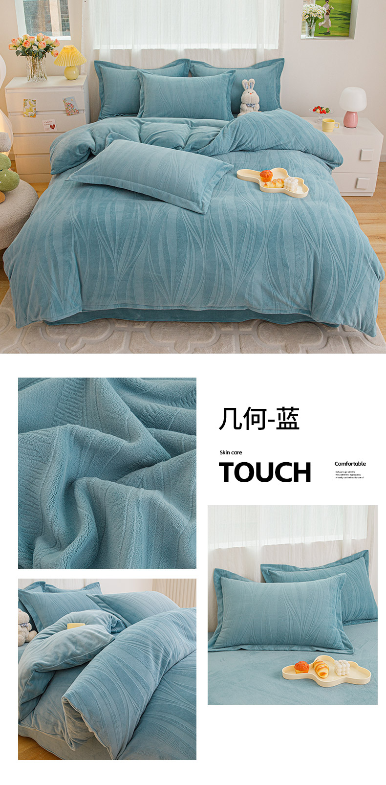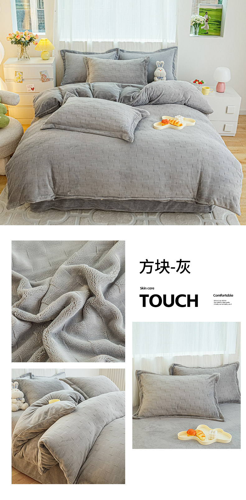 (总)锦罗绣 2025新款牛奶绒肌理纹四件套,肌理纹-灰,肌理纹-咖,肌理纹-蓝,肌理纹-绿,肌理纹-棕,艾草绿,繁星蓝,粉拼灰,米白拼灰,暖橘,浅灰