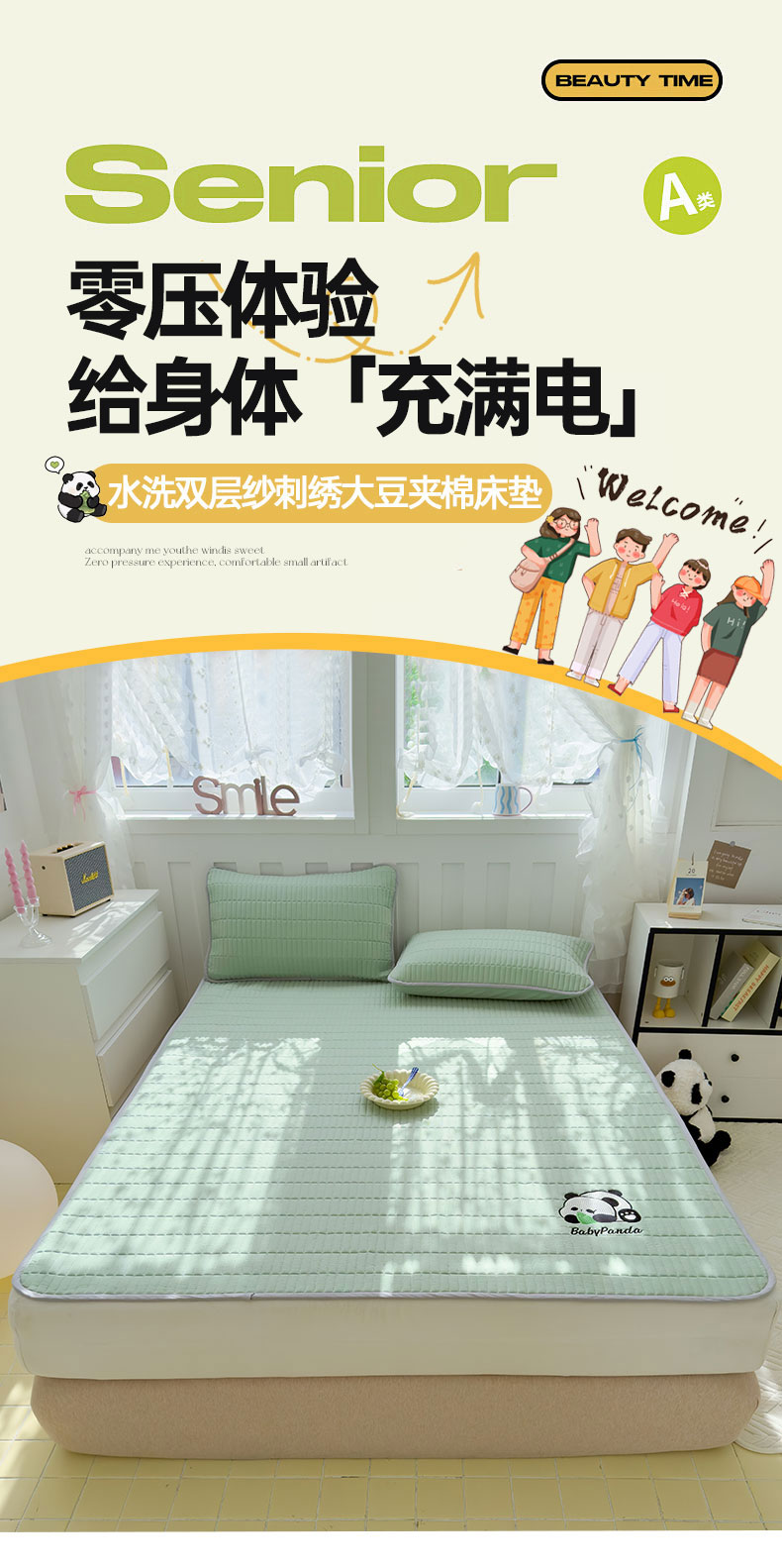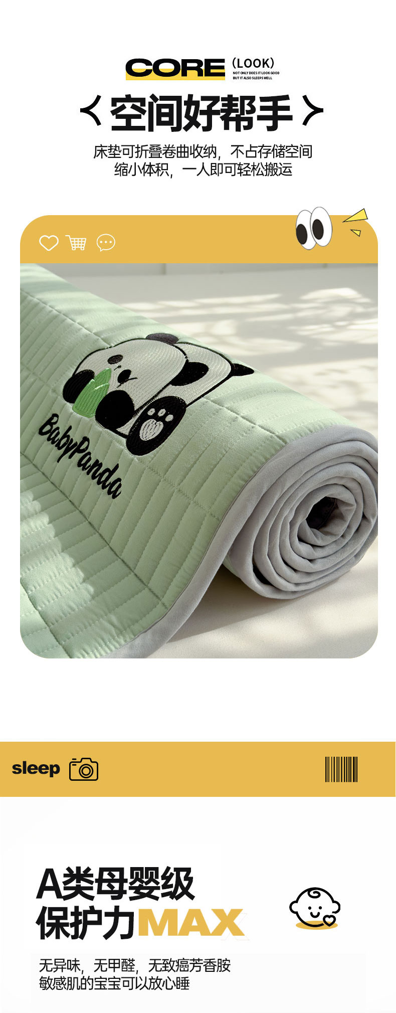 当前位置: 91家纺网 > 商品网购 > 床垫/床褥 > 普通床垫 > 灰鲸 2025新款水洗双层纱萌物刺绣大豆夹棉床垫 熊猫baby-薄荷绿