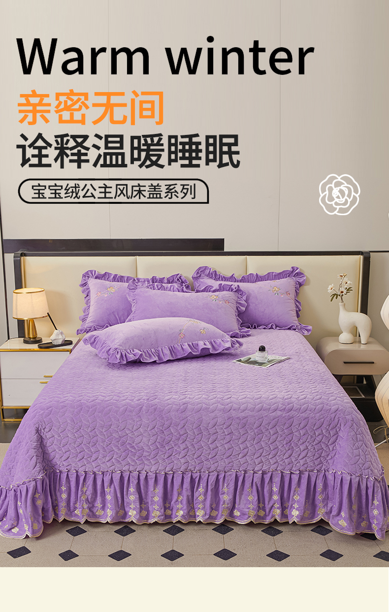 商品名称:2024秋冬新品茉含宝宝绒公主风单床盖 浪漫紫-