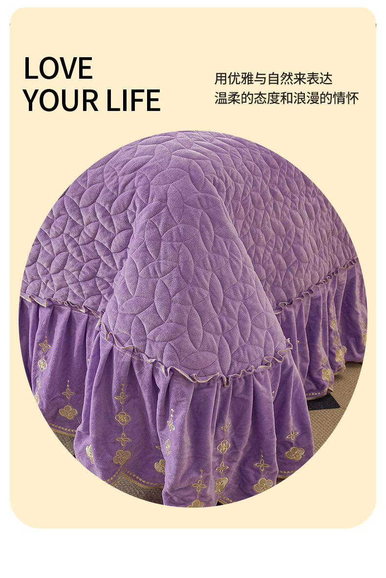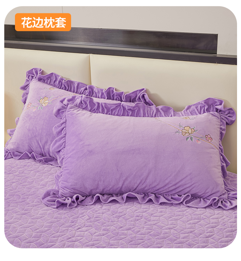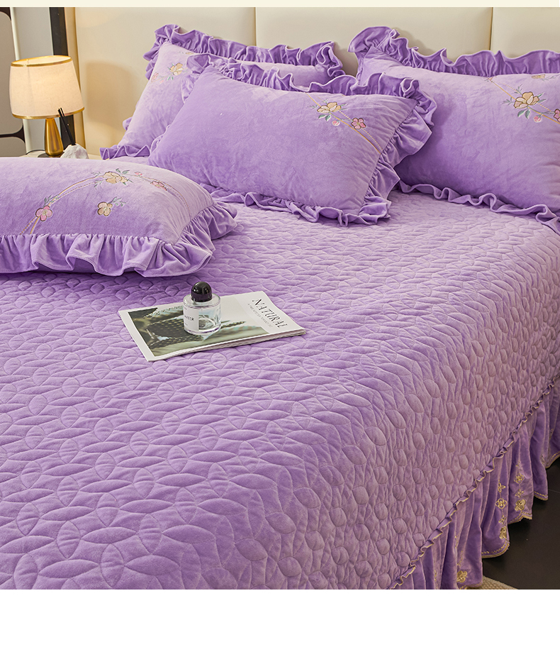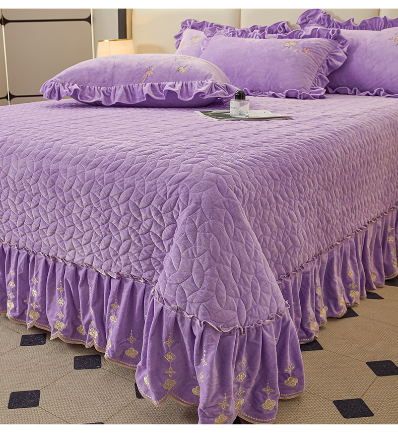 (总)恒爱家纺 2025新款牛奶绒贴布绣夹棉床裙四件套,豆沙红,浪漫紫,天空蓝,温馨粉,象牙白