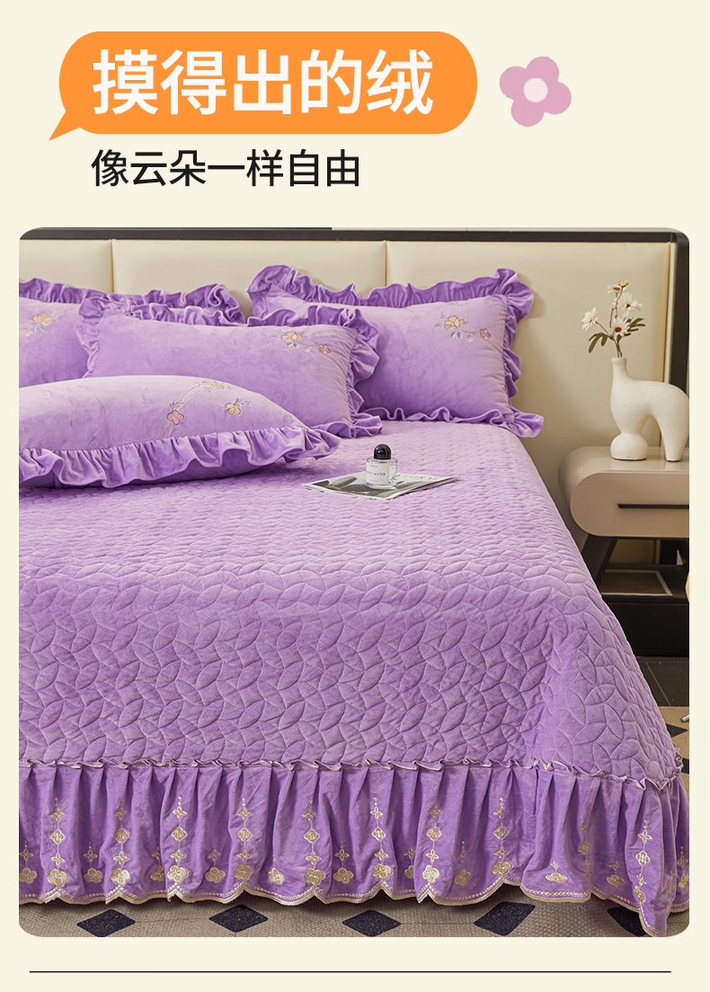 (总)恒爱 2022秋冬水晶绒翩翩花舞夹棉床裙四件套,大红色,豆沙红,橄榄绿,公主粉,桔色,咖啡色,孔雀绿,拉菲红,罗兰紫,玫红色,美人玉,米白色,米驼色,抹茶绿,浅灰色,紫色