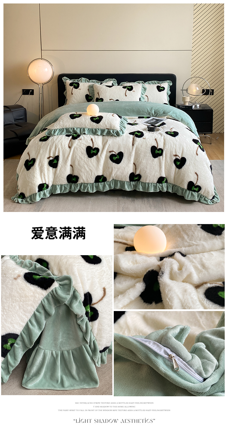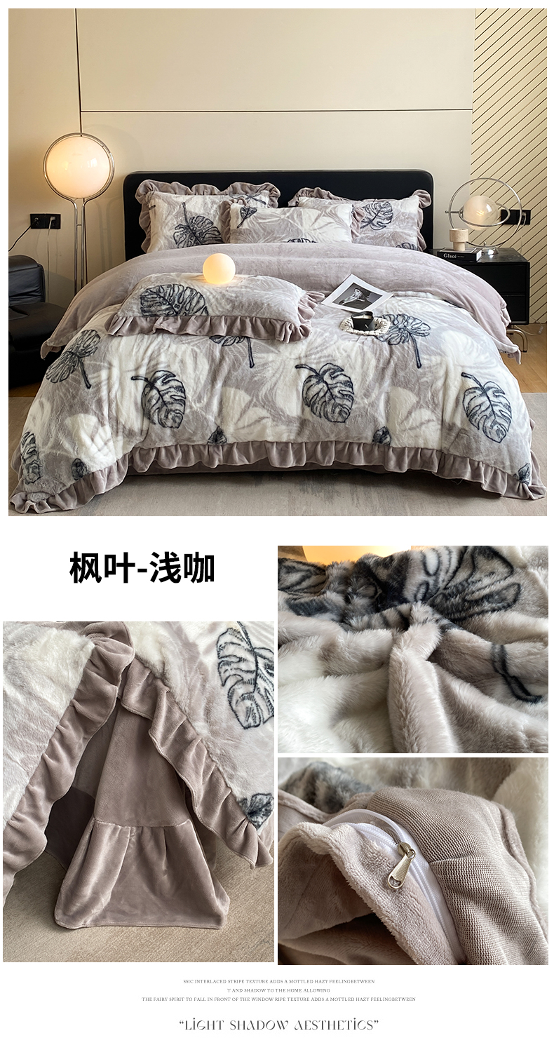 (总)恒爱 2022秋冬水晶绒翩翩花舞夹棉床裙四件套,大红色,豆沙红,橄榄绿,公主粉,桔色,咖啡色,孔雀绿,拉菲红,罗兰紫,玫红色,美人玉,米白色,米驼色,抹茶绿,浅灰色,紫色
