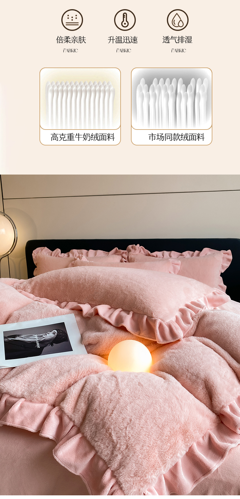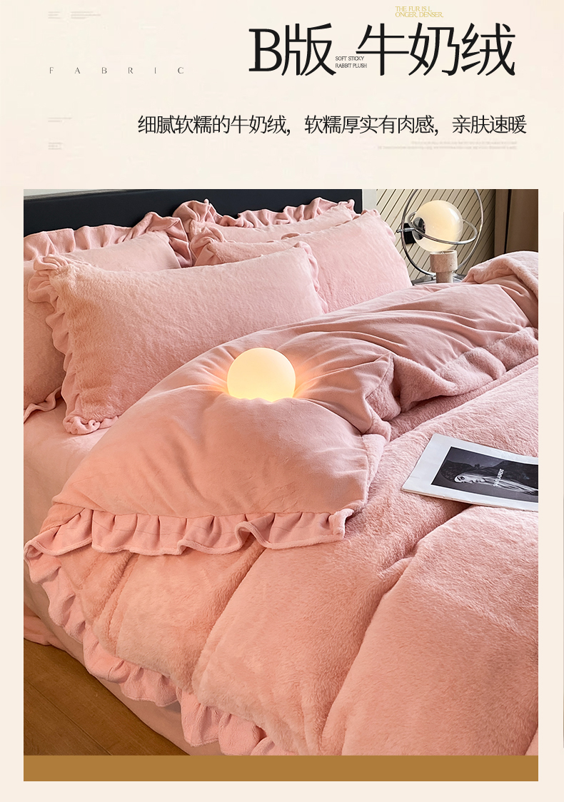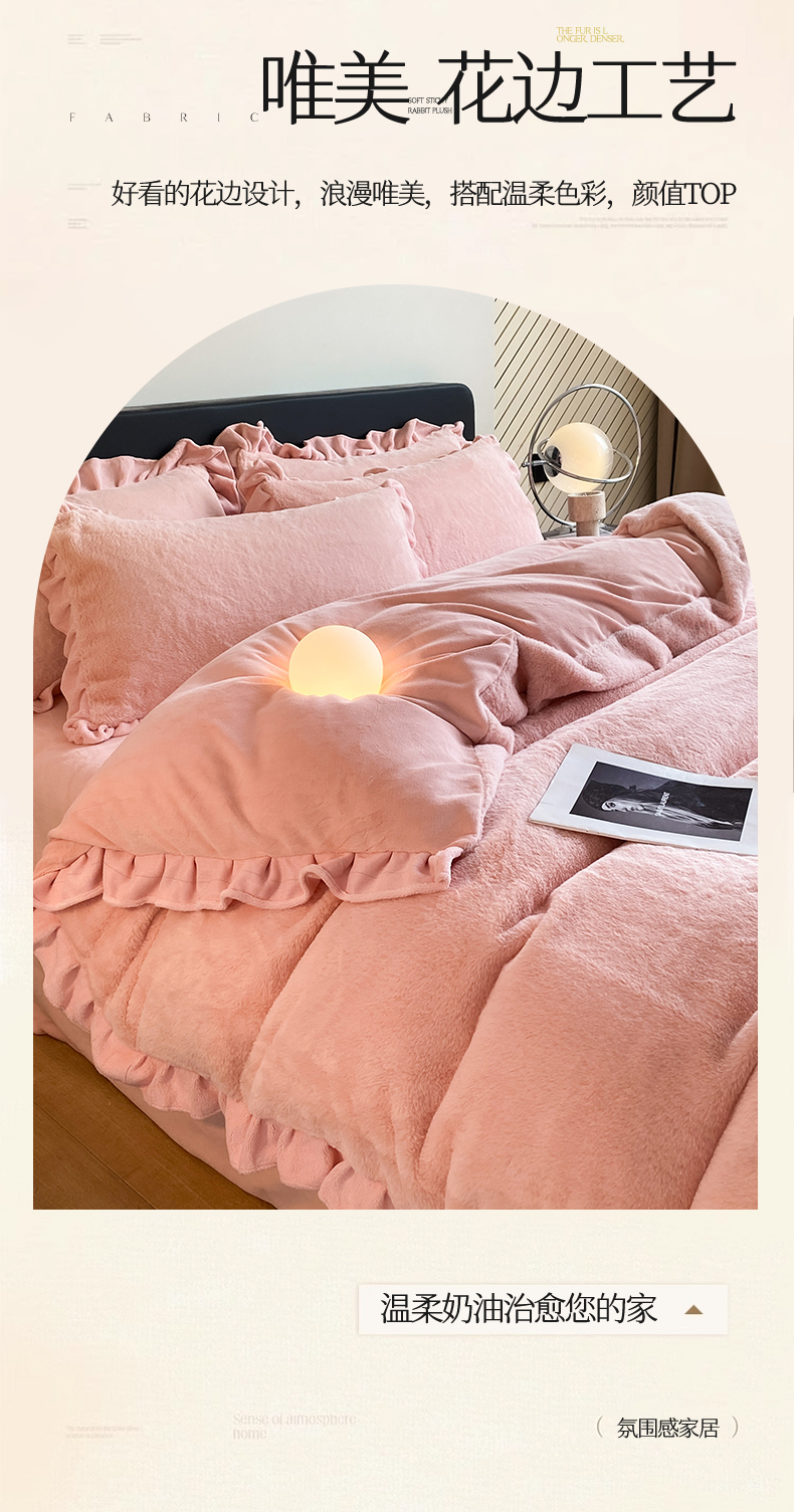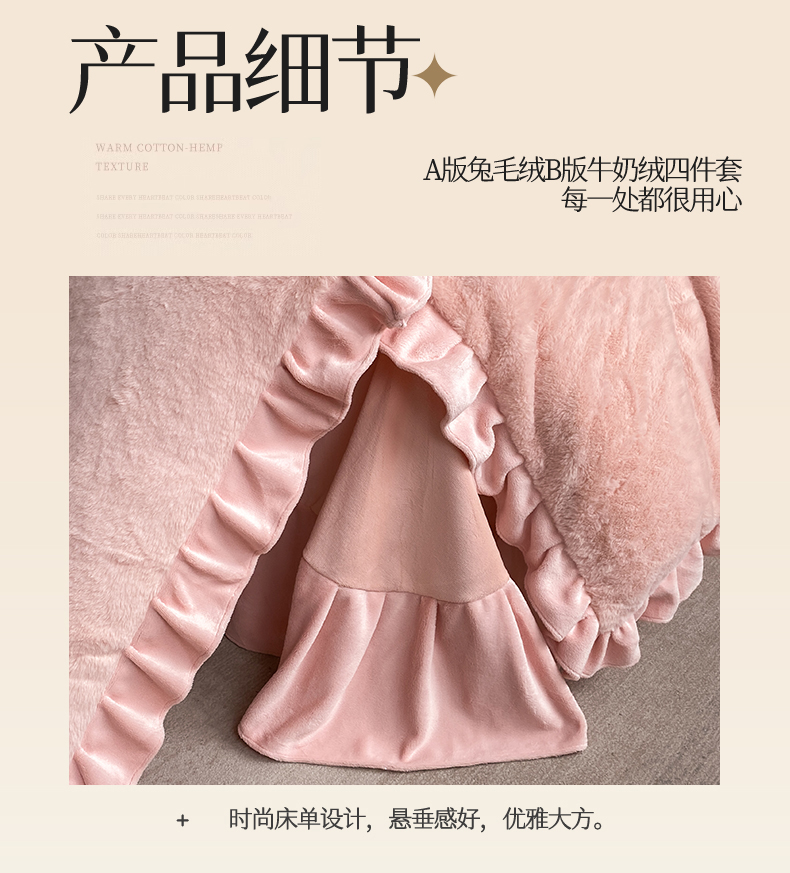 商品名称:2024新款AB版兔毛绒韩版四件套 美人玉