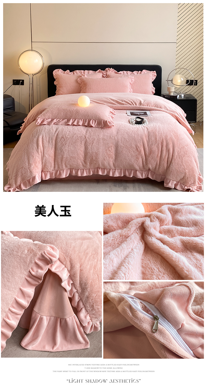 2024新款AB版兔毛绒韩版四件套 美人玉
