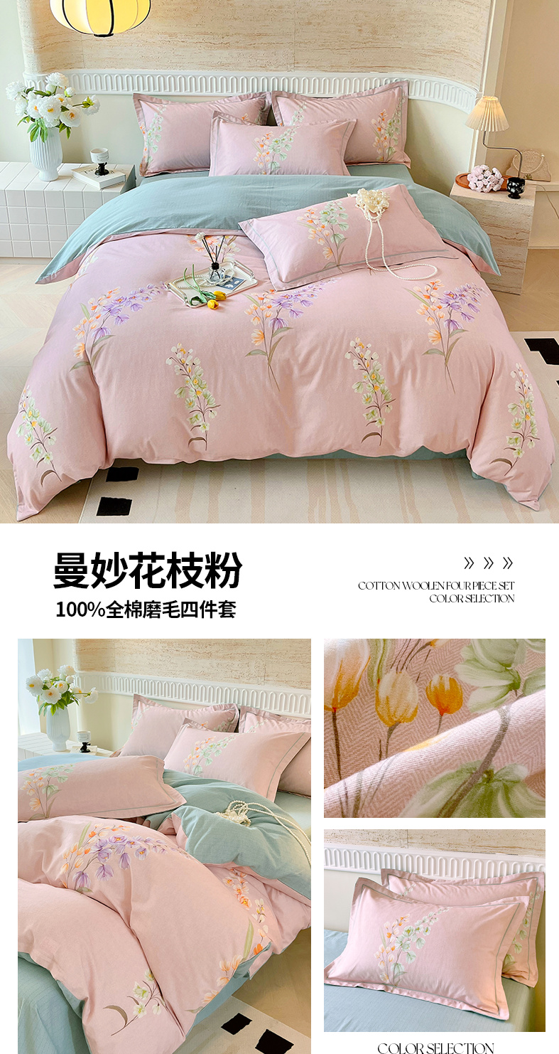 当前位置: 91家纺网 > 商品网购 > 床品套件 > 四件套 > 全棉普通四件套 > 梧桐树 100%全棉磨毛四件套 2025秋冬新款【优雅系列】 悠悠花香