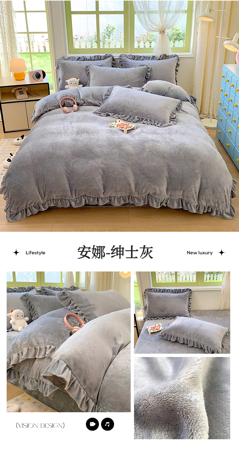 商品名称:喜梦缘家纺 2025新款加厚韩版牛奶绒四件套-安娜 安娜-绅士灰