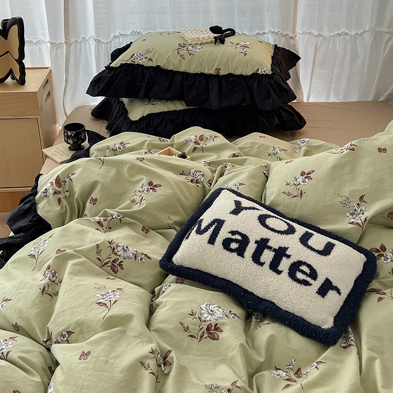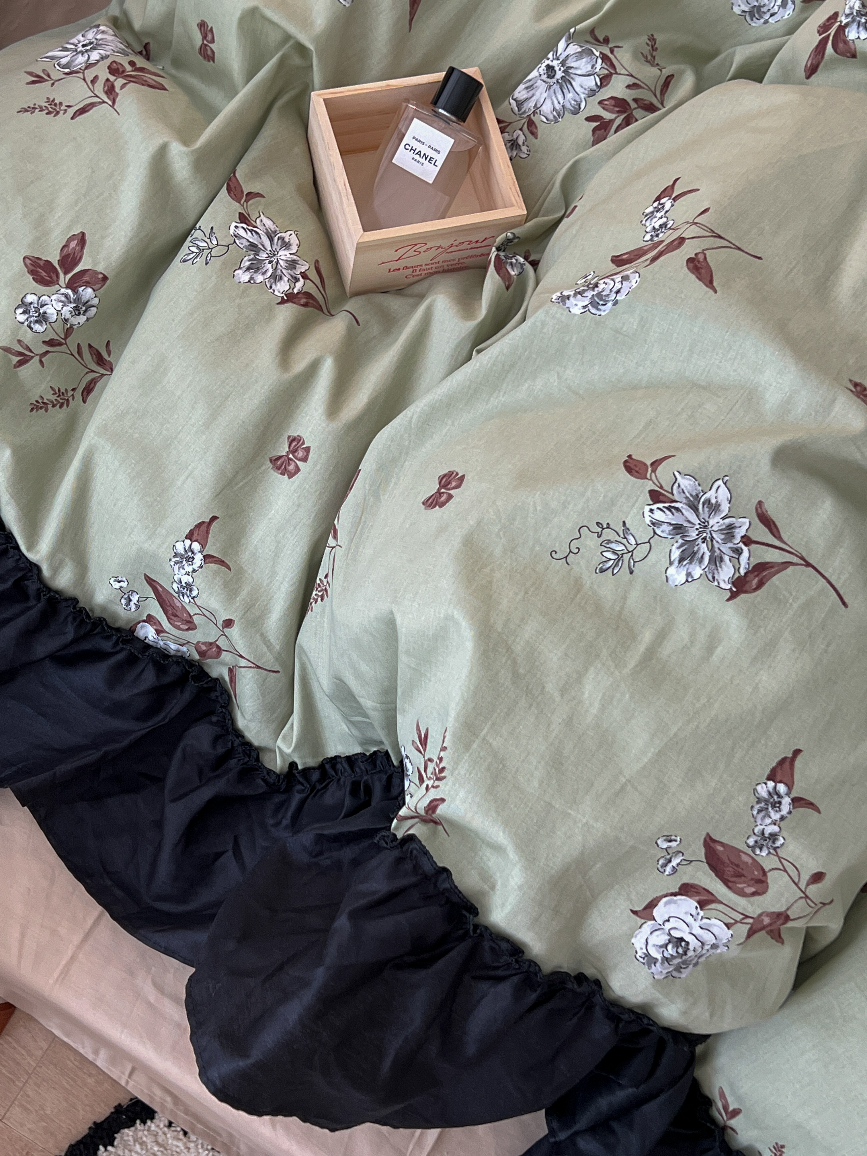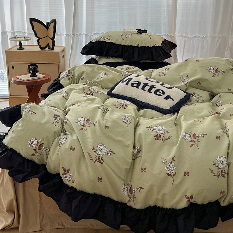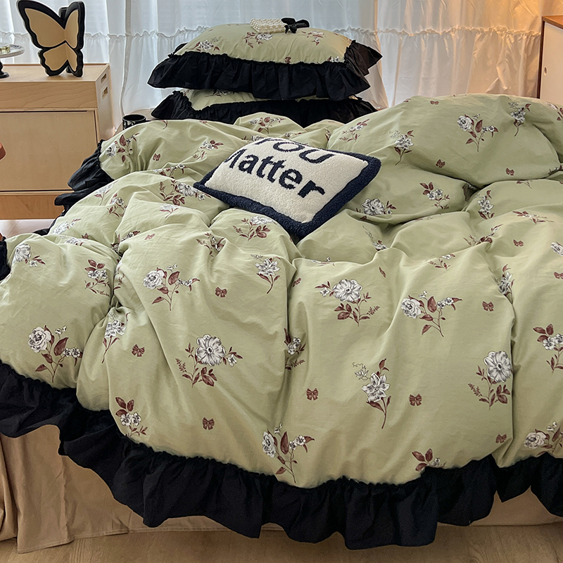 昔可家纺 2024黑色贴边花边全棉款四件套 海瑟薇