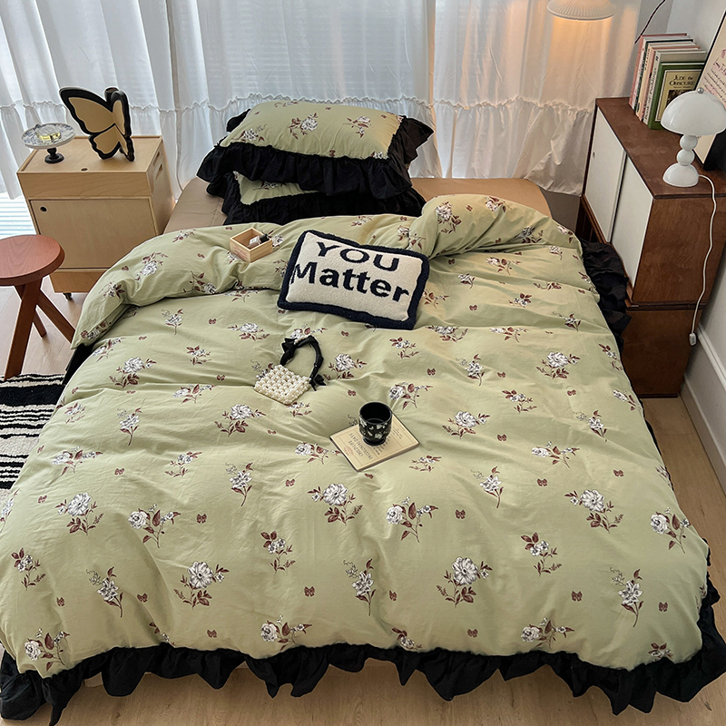 商品名称:昔可家纺 2024黑色贴边花边全棉款四件套 海瑟薇
