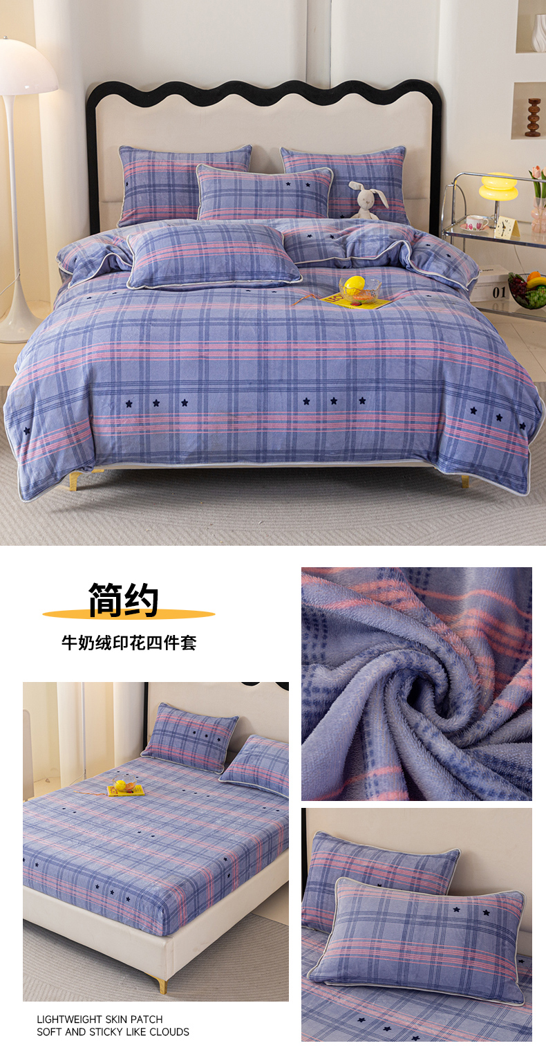 当前位置: 91家纺网 > 商品网购 > 床品套件 > 四件套 > 牛奶绒四件套 > 欧喜璐 2024年新款 8.5-9.5斤加厚牛奶绒金貂绒法莱绒四件套单被套 简约