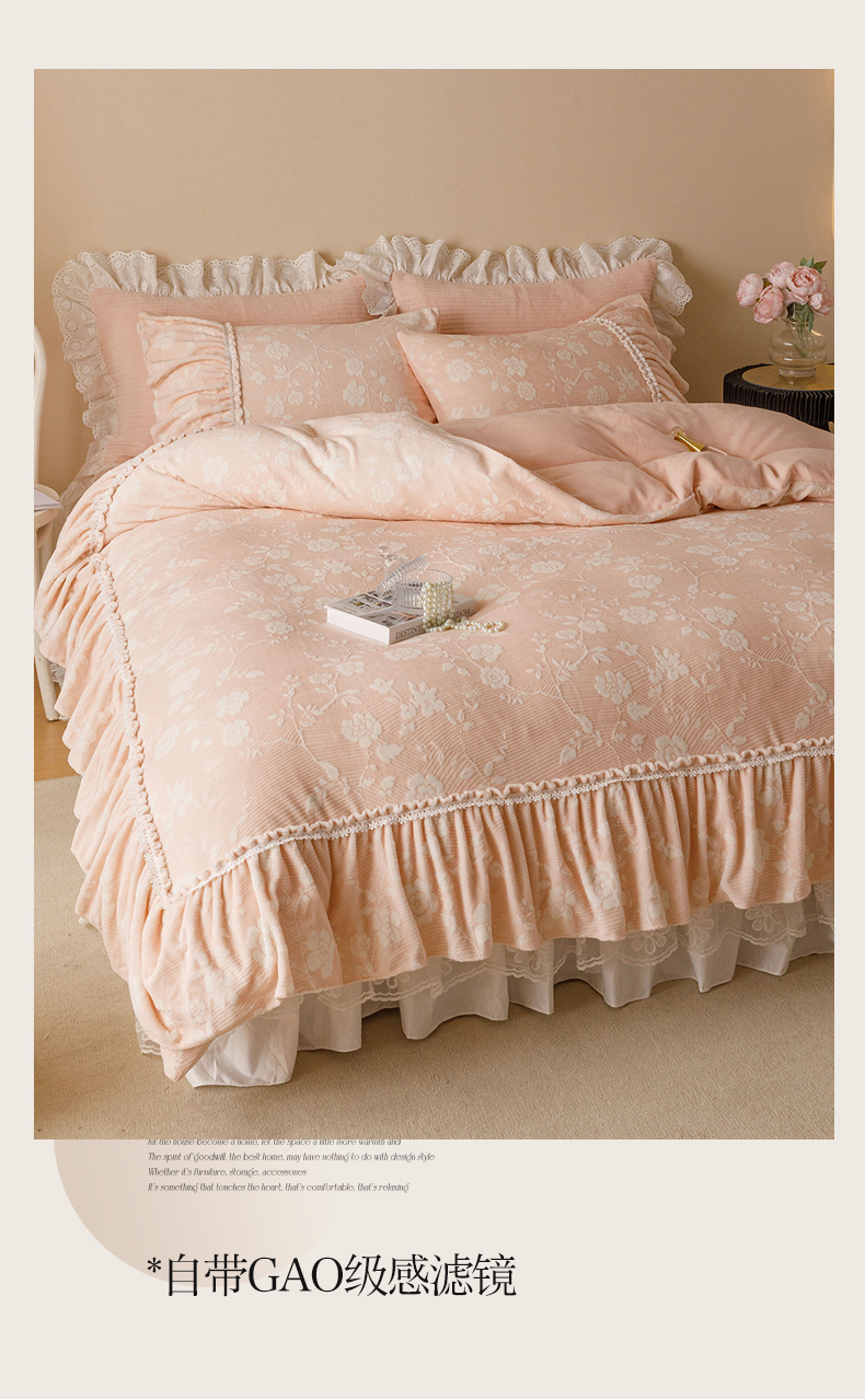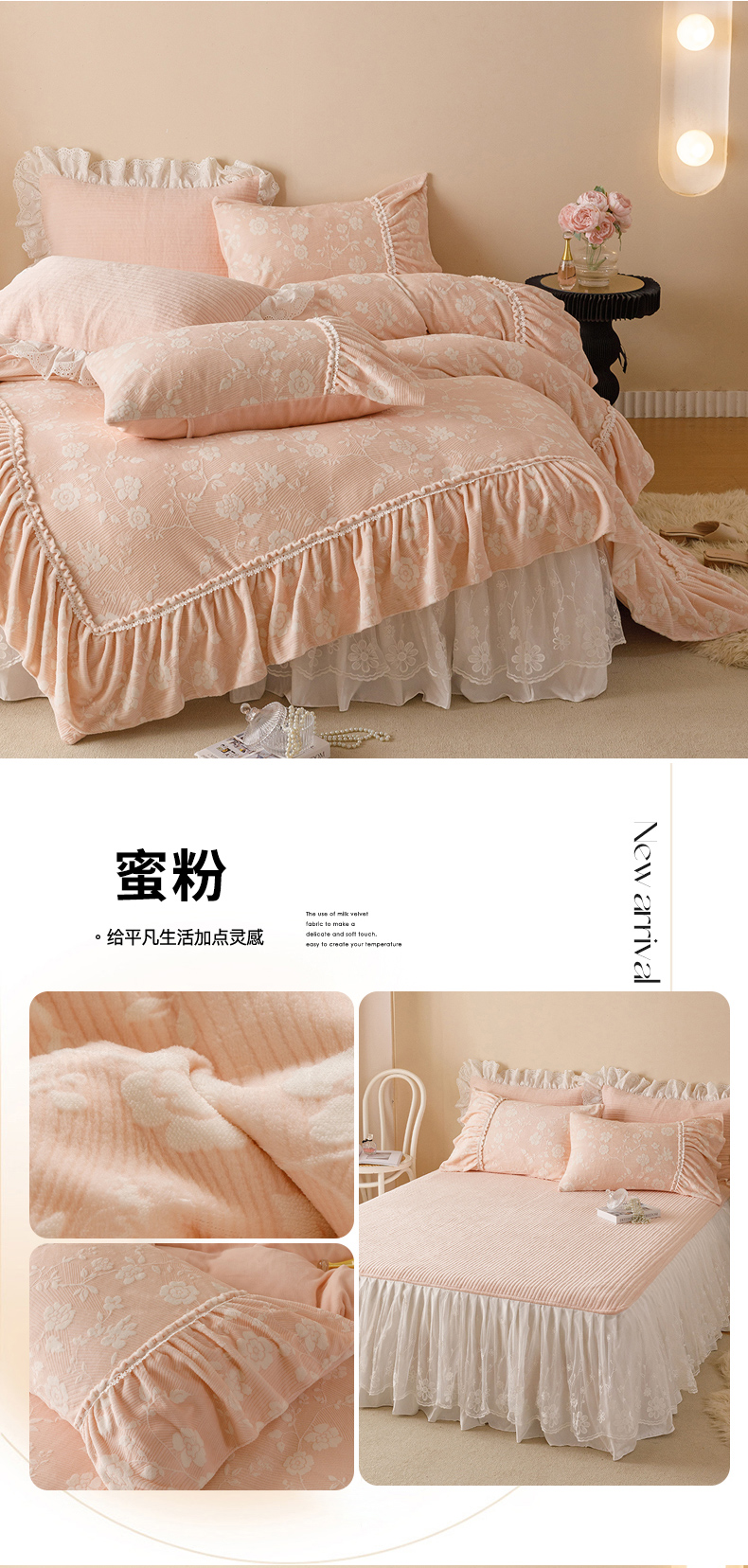当前位置: 91家纺网 > 商品网购 > 床品套件 > 四件套 > 其它四件套 > 2024新款5D雕花着色牛奶绒法式奶油风套件-安妮系列 蜜粉