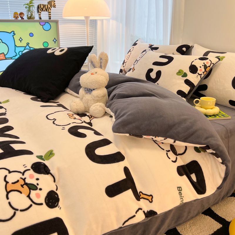 2024新款原创白色小清新场景牛奶绒单被套 嗨皮狗