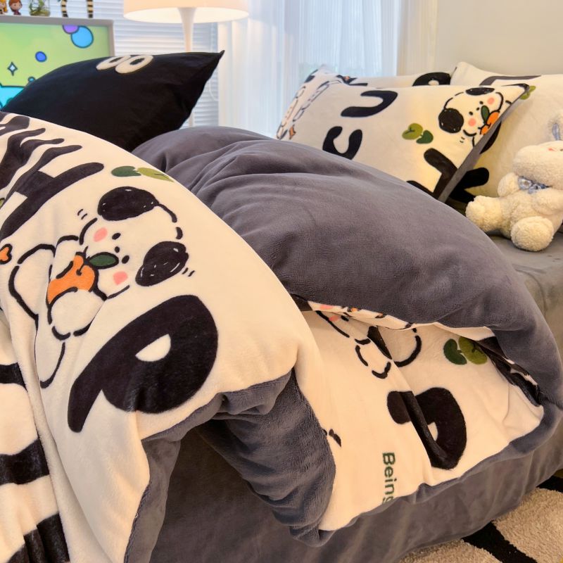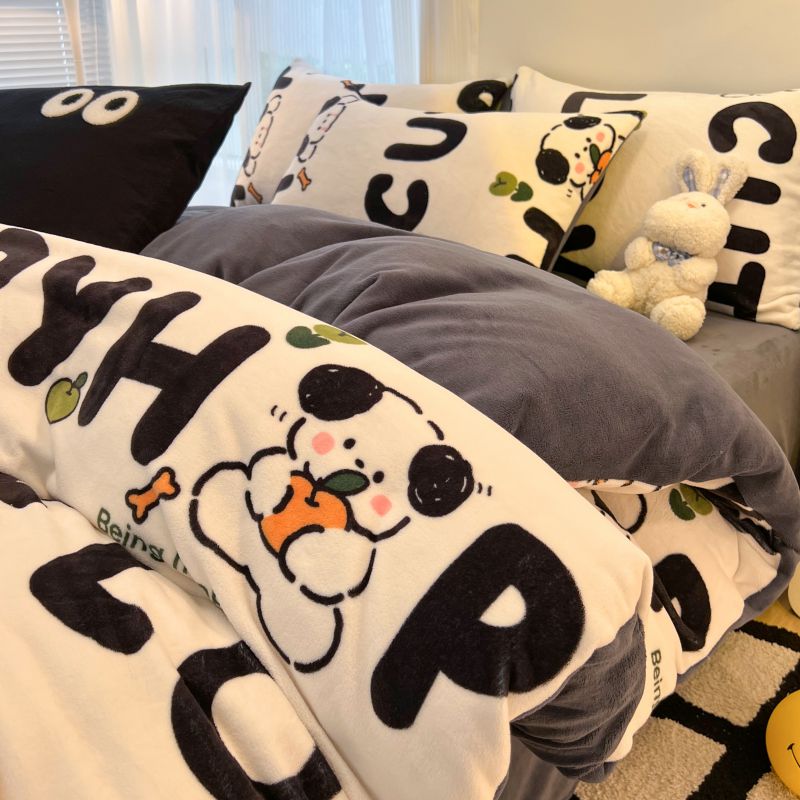 商品名称:2024新款原创白色小清新场景牛奶绒单被套 嗨皮狗