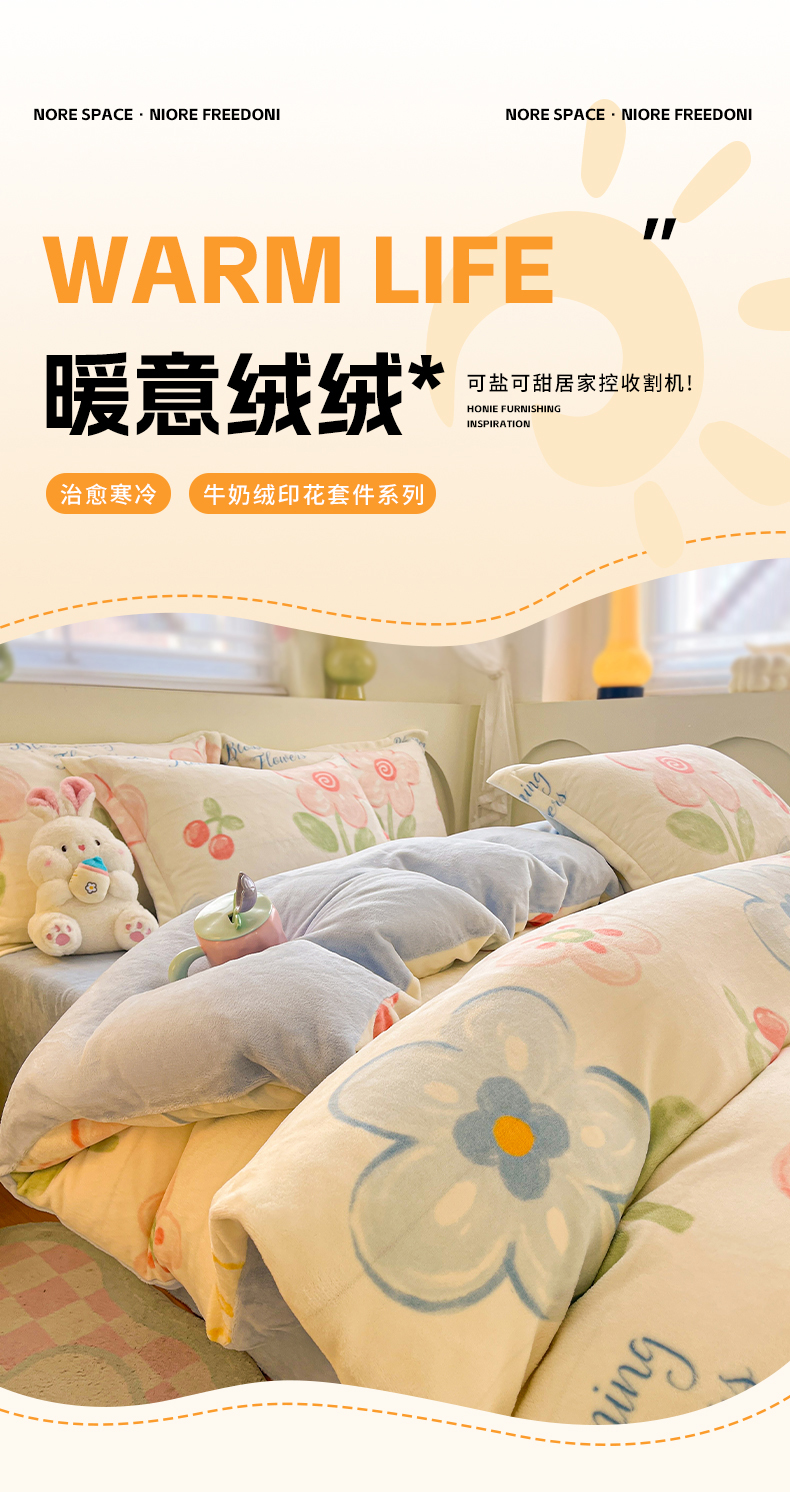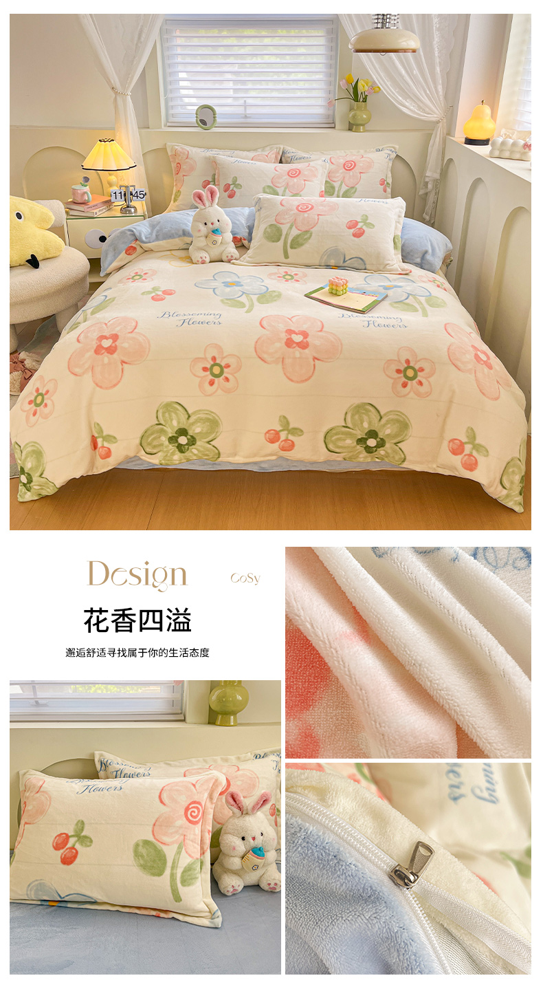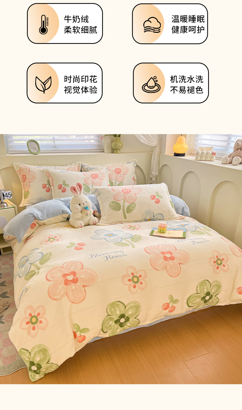 当前位置: 91家纺网 > 商品网购 > 床品套件 > 四件套 > 牛奶绒四件套 > 梦之岛 2024新款高克重小清新印花牛奶绒保暖四件套 花香四溢