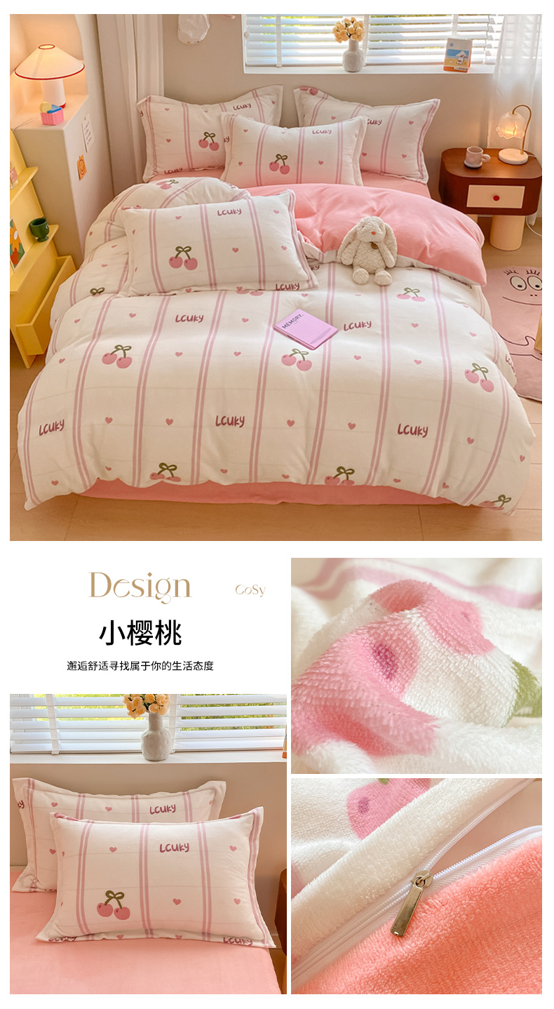 当前位置: 91家纺网 > 商品网购 > 床品套件 > 四件套 > 牛奶绒四件套 > 梦之岛 2024新款高克重小清新印花牛奶绒保暖四件套 小樱桃