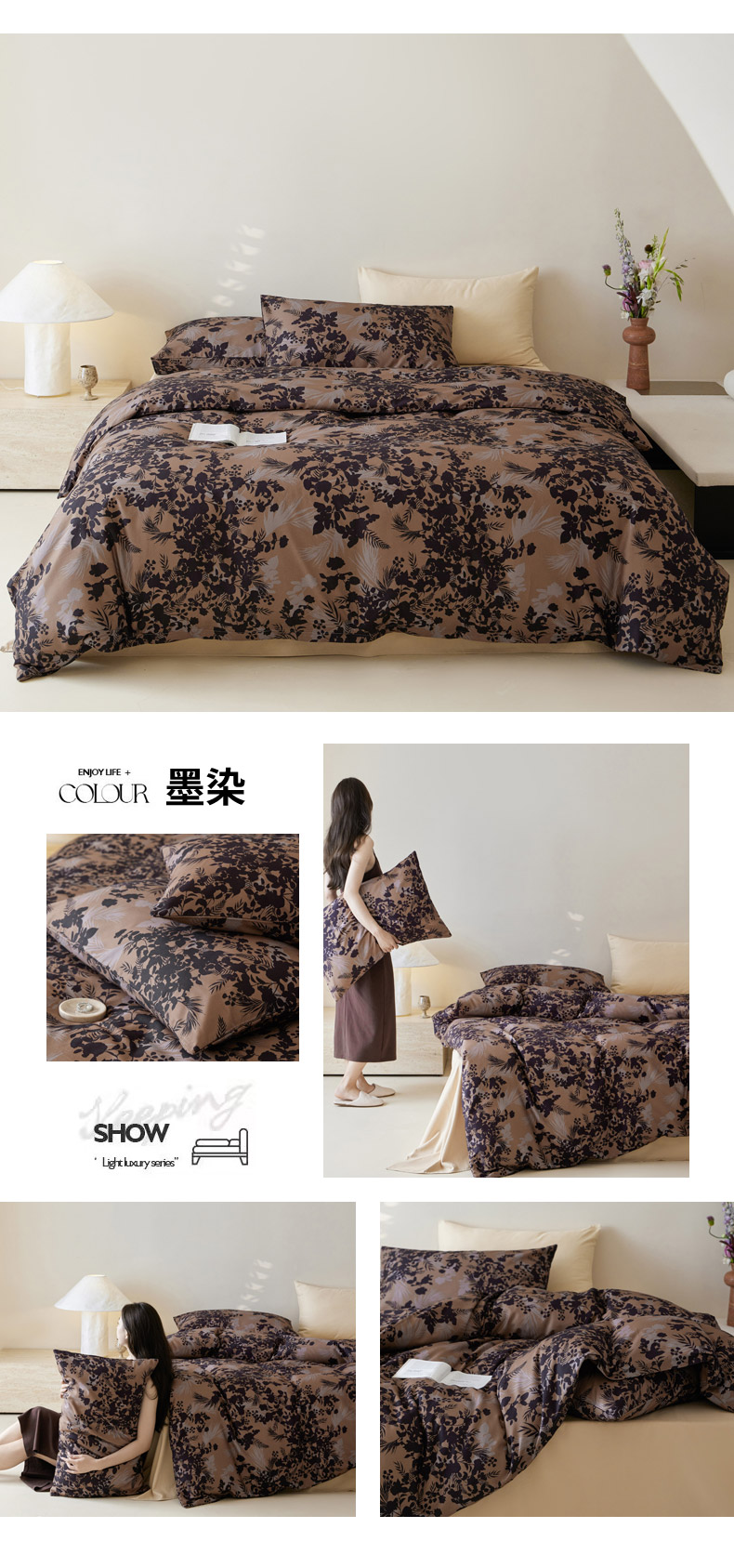 商品名称:怡家居 2024新款全棉磨毛印花四件套 墨染