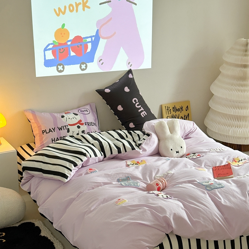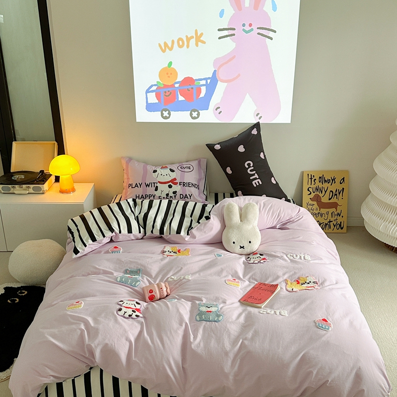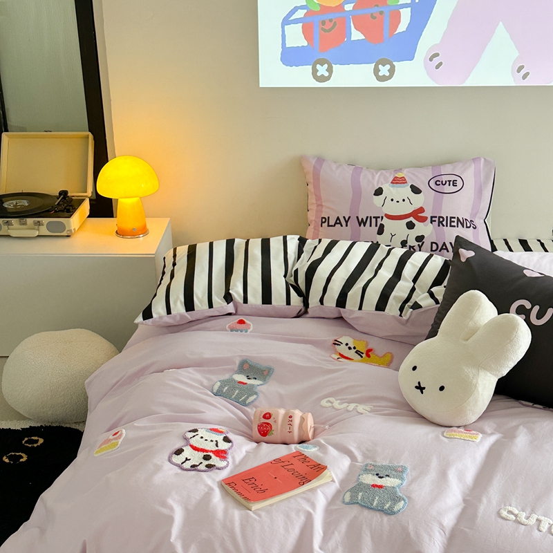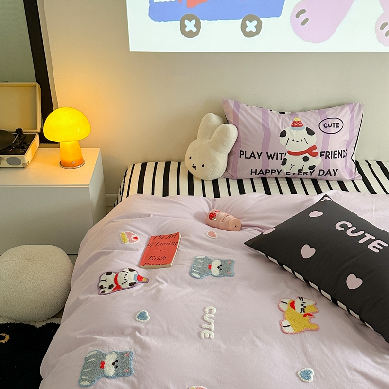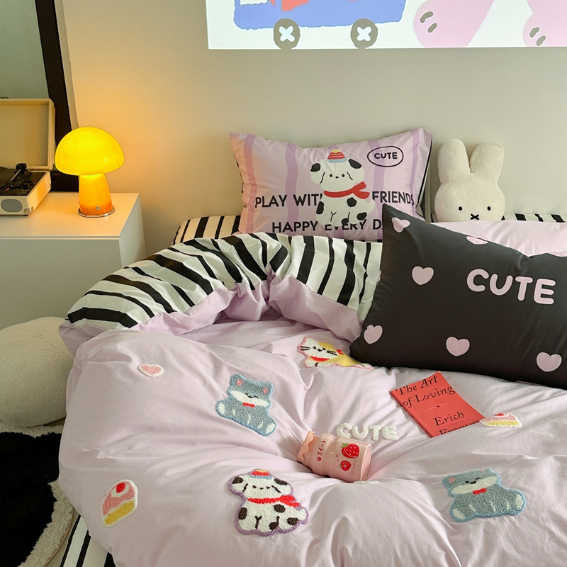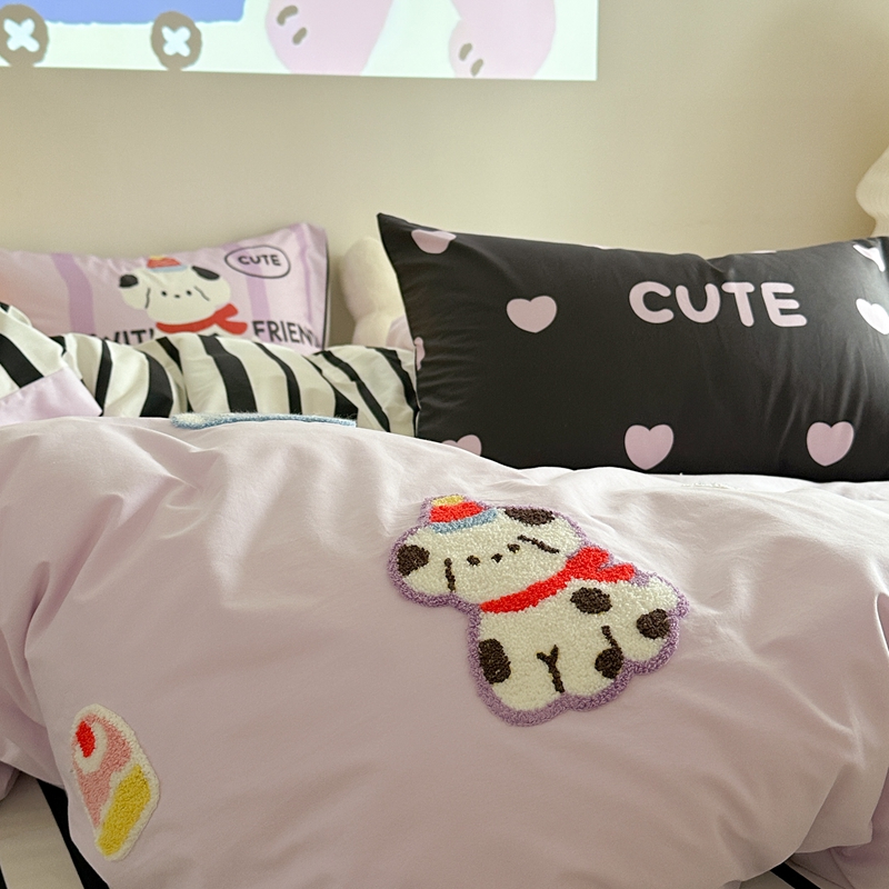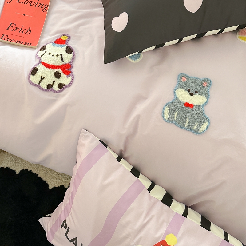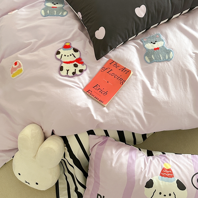 (总)柚子YOUTH 2025新款全棉纯棉工艺款13070贴布绣四件套,爱心小象,毛绒小狗,蘑菇女孩,星星法师