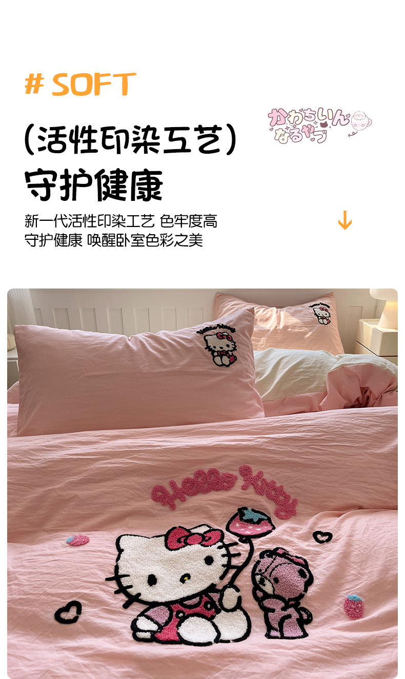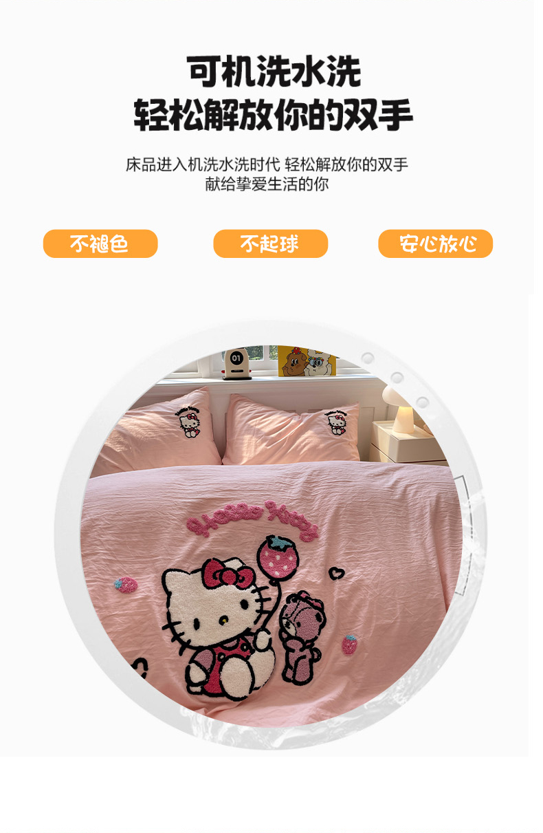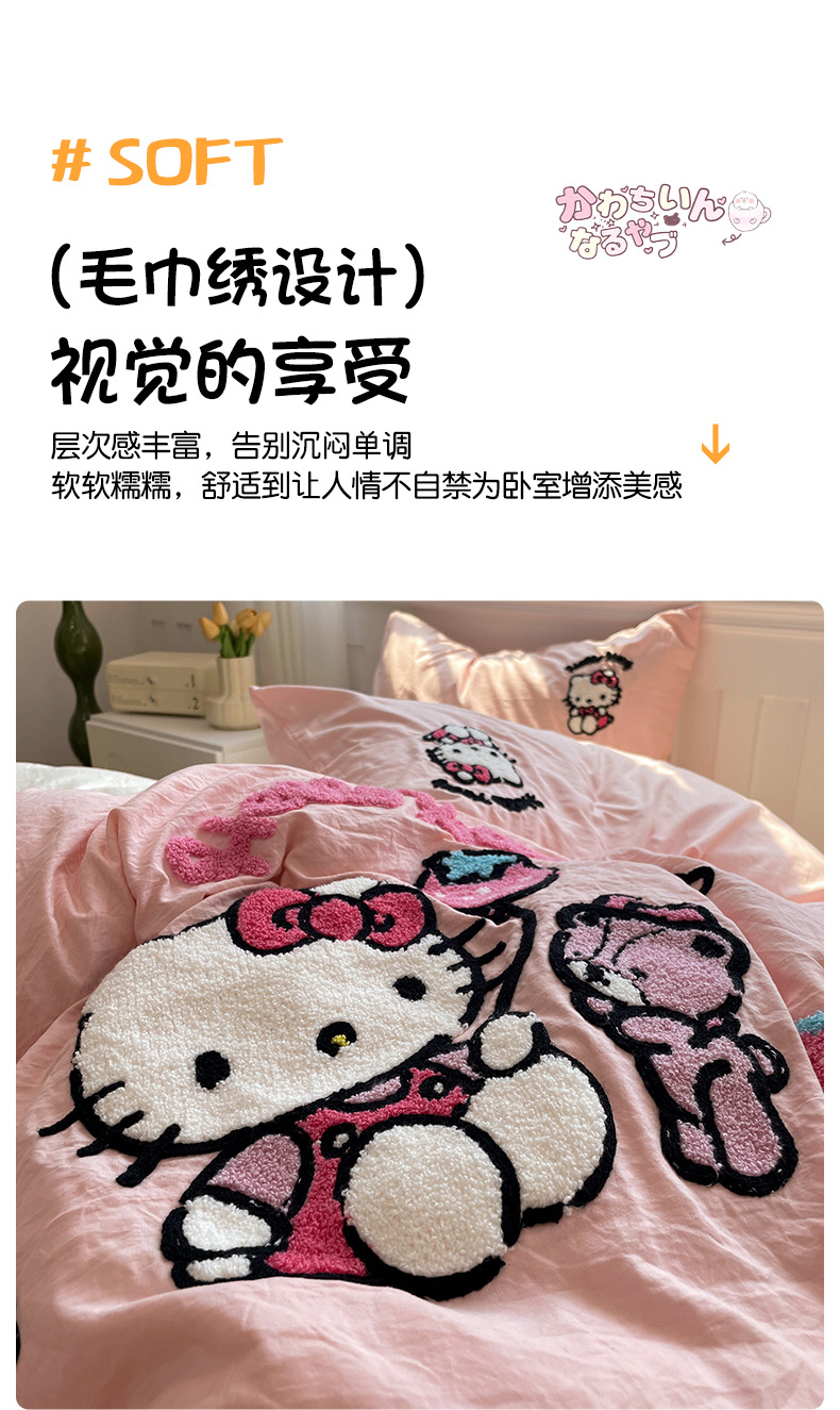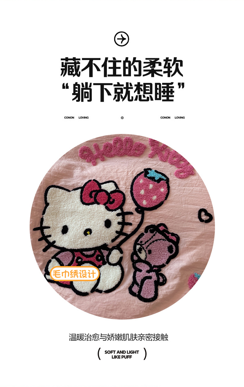 当前位置: 91家纺网 > 商品网购 > 床品套件 > 四件套 > 水洗棉四件套 > 奈颜 2024正版授权三丽鸥爆款超柔水洗棉纯色毛巾绣四件套学生三件套(含防伪吊牌)-摄影图 KT猫-浅粉+乳白