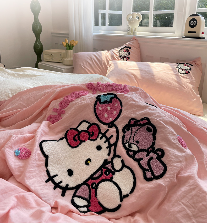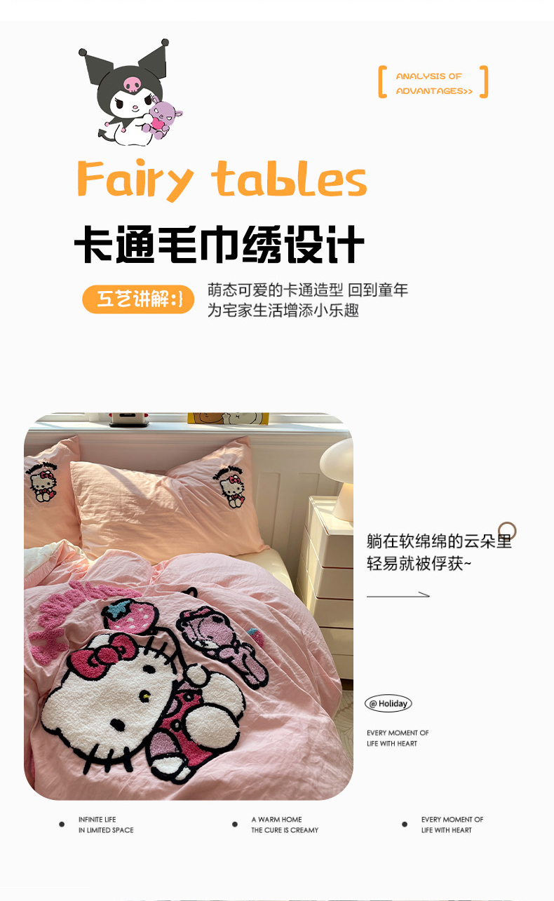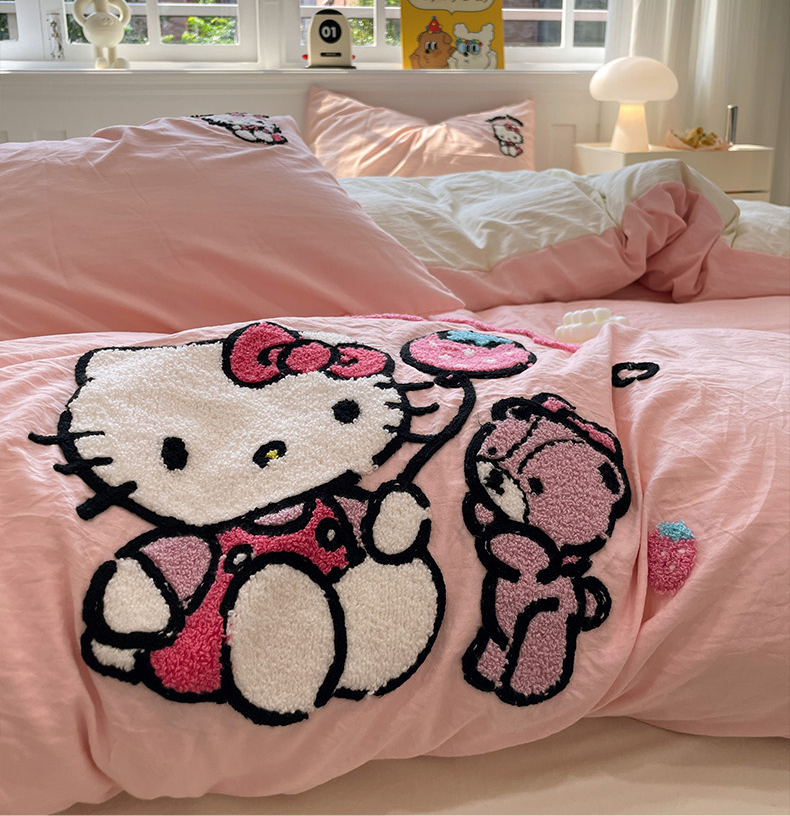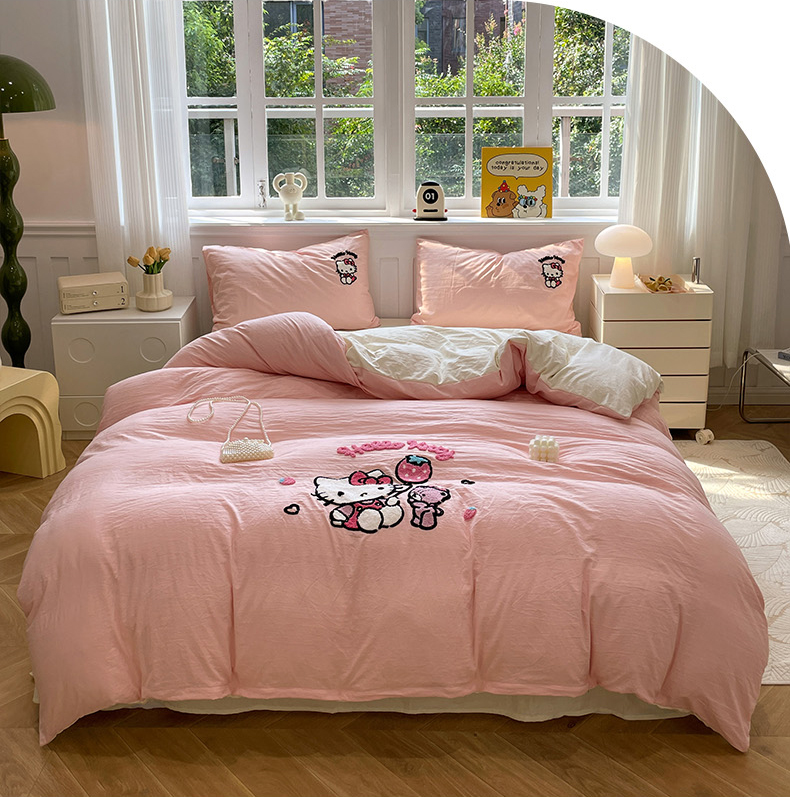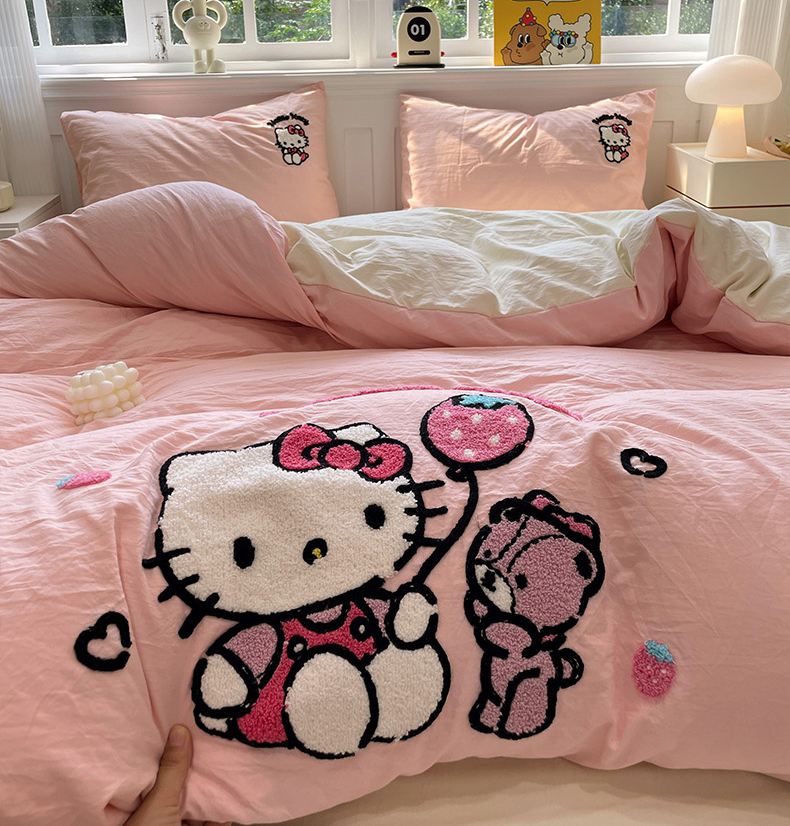 当前位置: 91家纺网 > 商品网购 > 床品套件 > 四件套 > 水洗棉四件套 > 奈颜 2024正版授权三丽鸥爆款超柔水洗棉纯色毛巾绣四件套学生三件套(含防伪吊牌)-摄影图 KT猫-浅粉+乳白