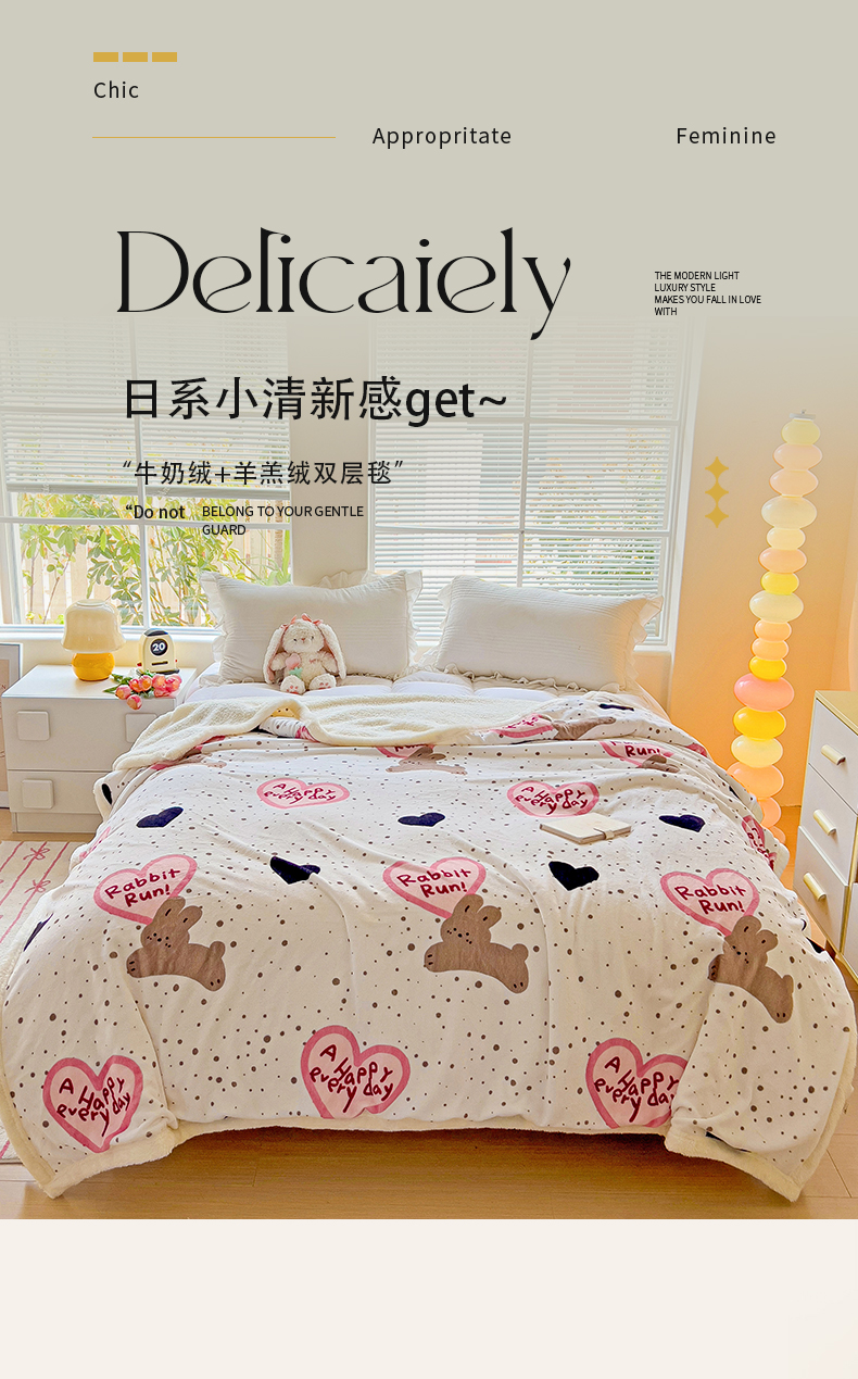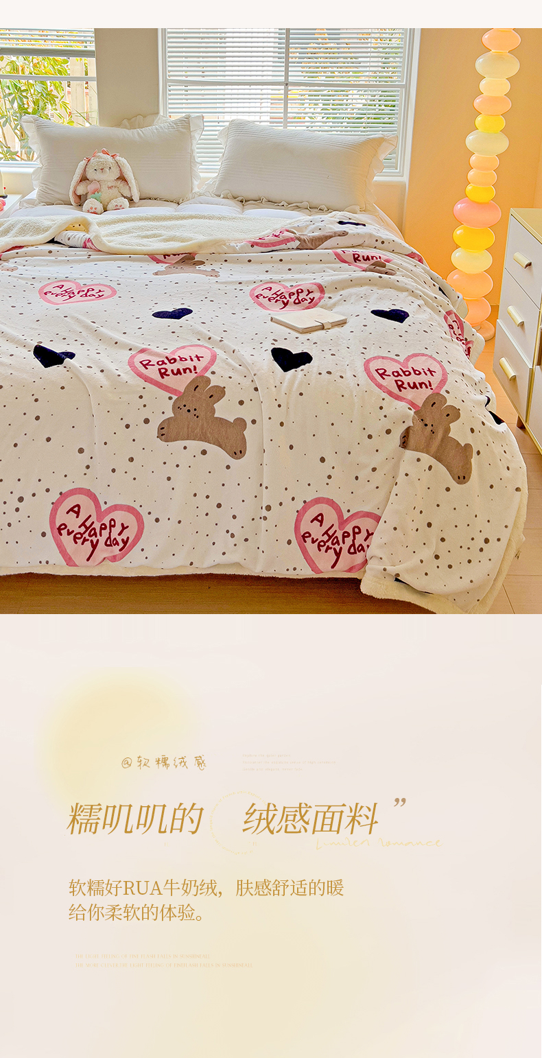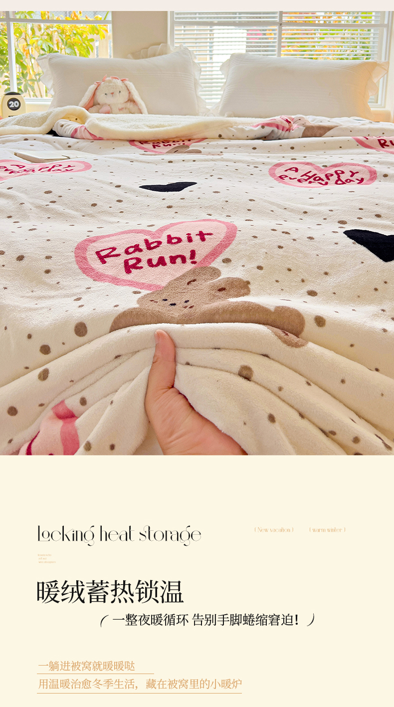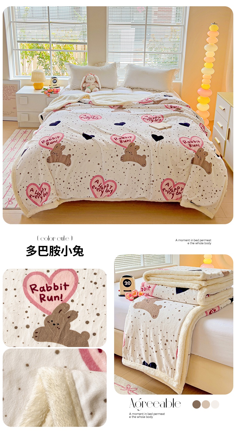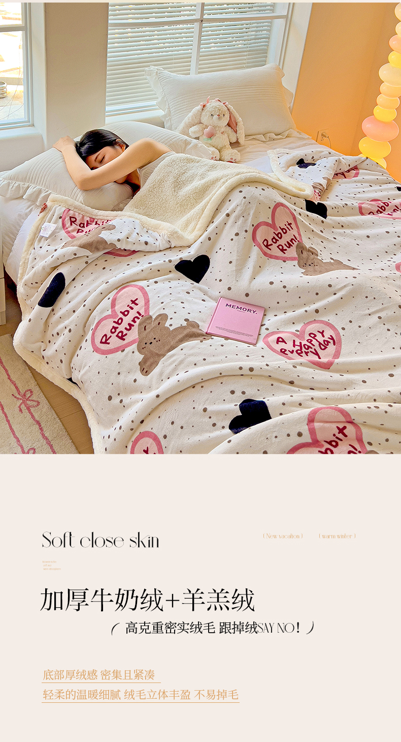 鑫喜莱家纺 2024新款牛奶绒羊羔绒盖毯毛毯毯子午睡毯 多巴胺小兔