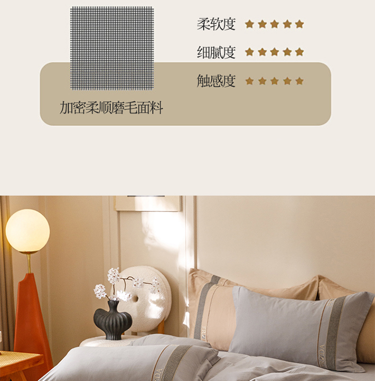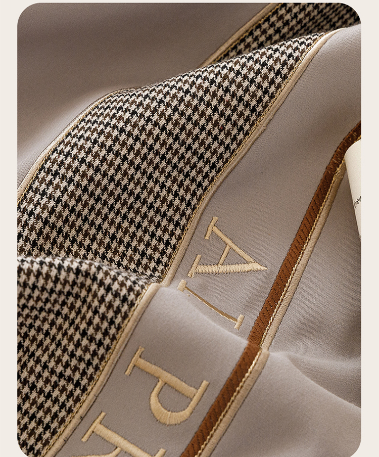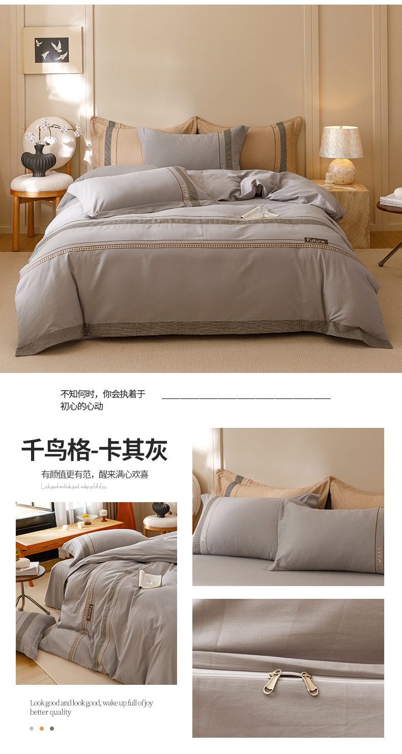 商品名称:2024新款A类云柔棉加密柔顺磨毛四件套千鸟格系列 千鸟格-卡其灰