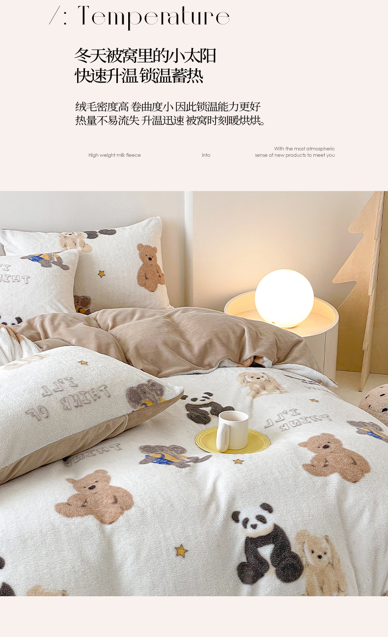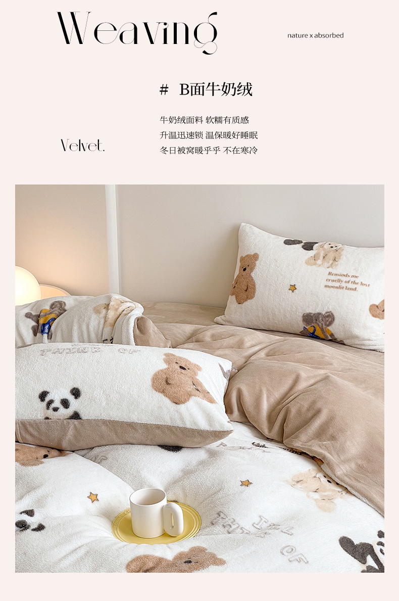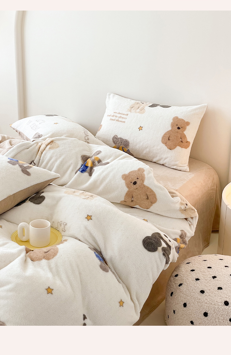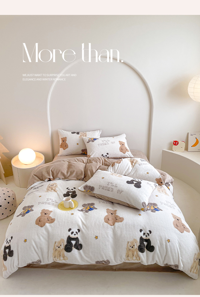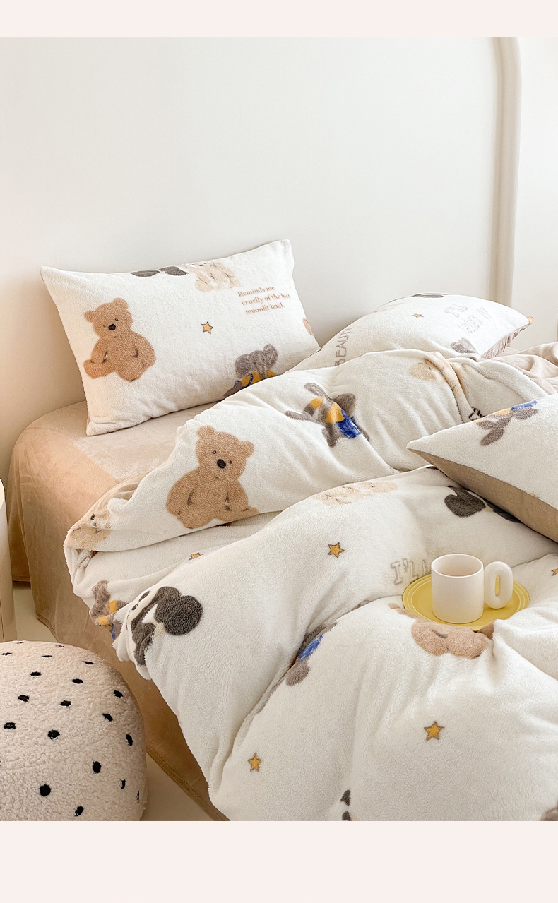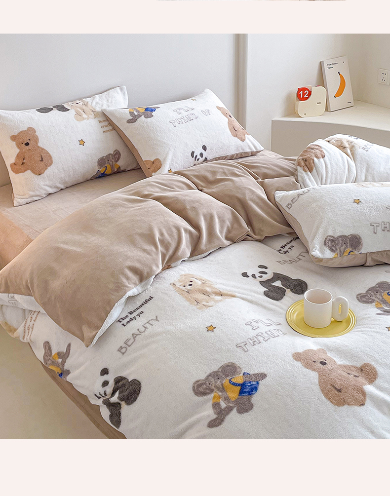 商品名称:山茶家纺 2024新款舒棉绒牛奶绒印花四件套 舒棉绒萌熊