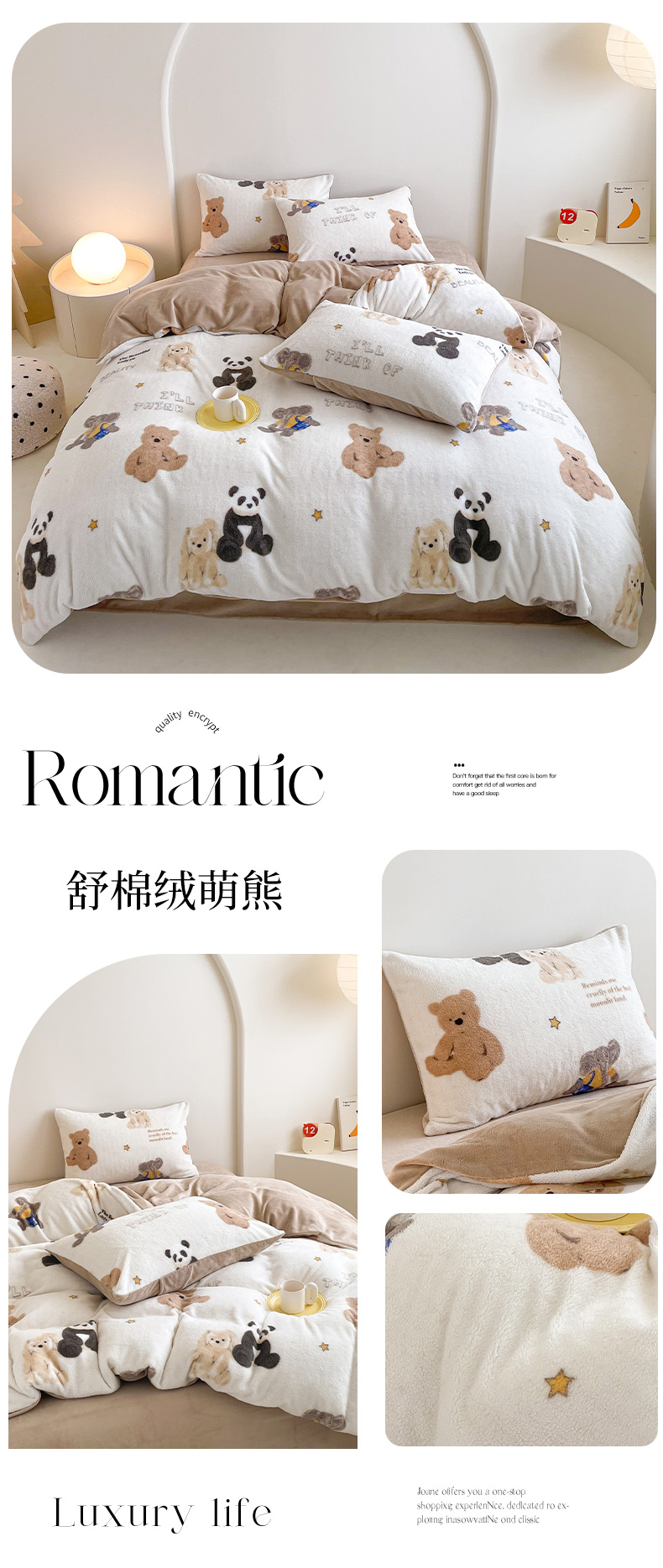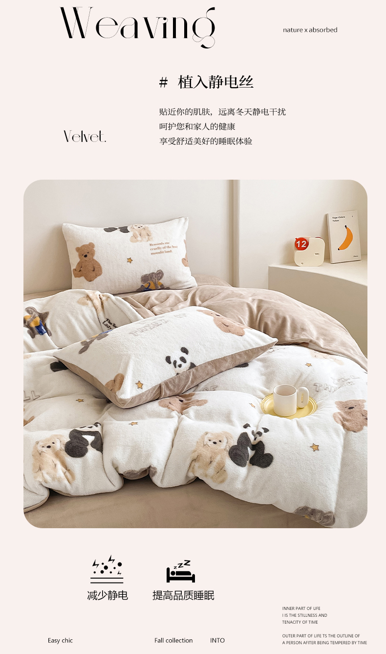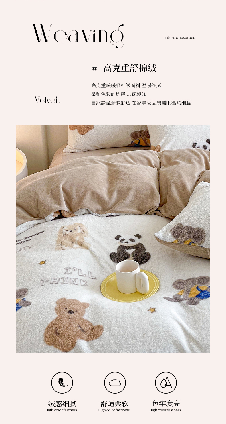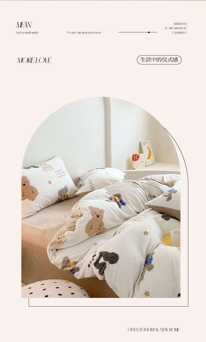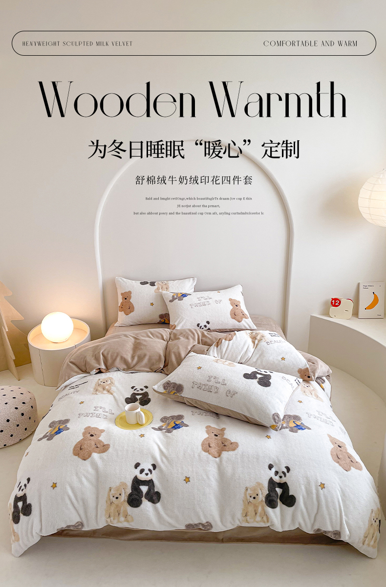 商品名称:山茶家纺 2024新款舒棉绒牛奶绒印花四件套 舒棉绒萌熊